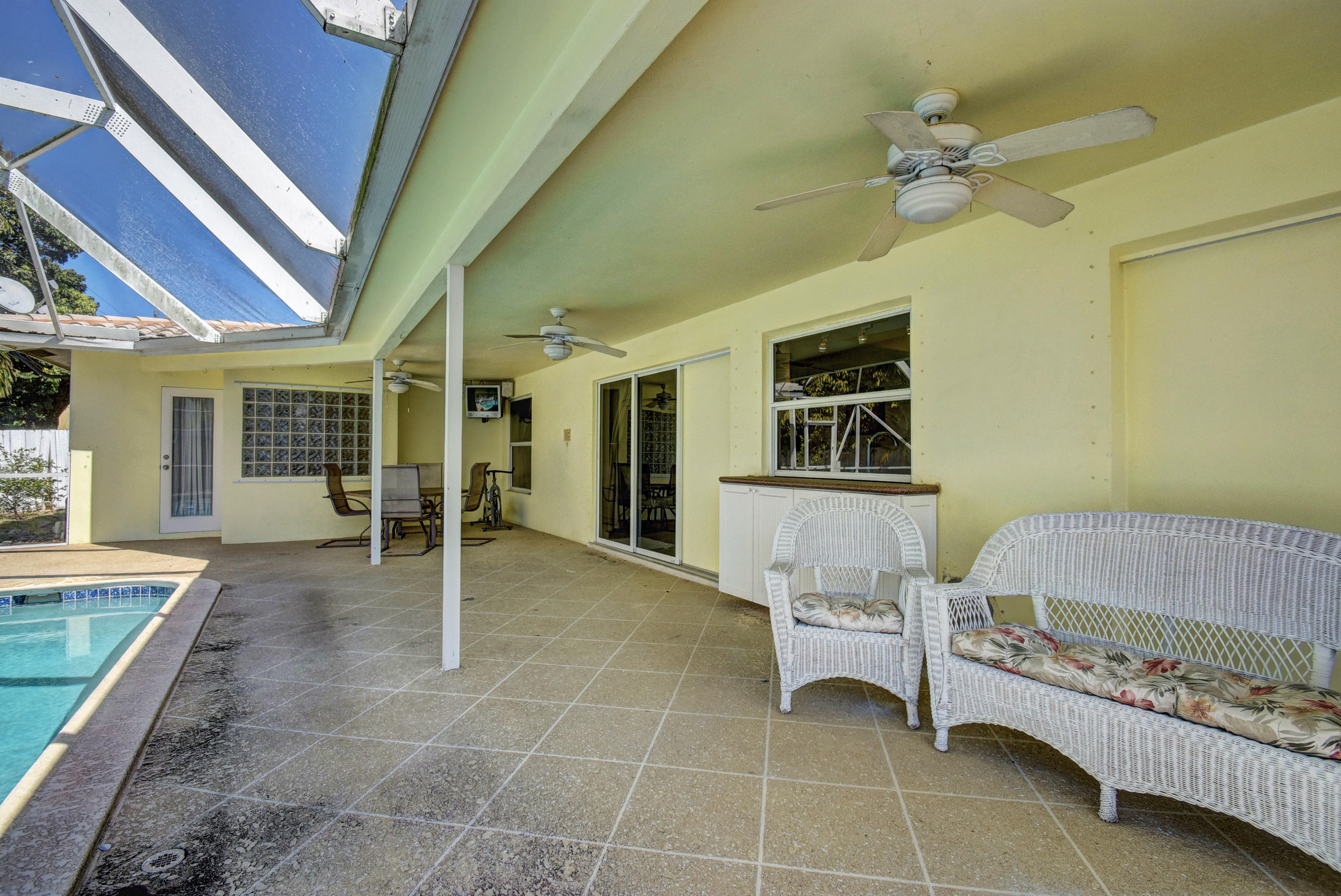 Gorgeous 4/3 pool home in highly desirable Boca Raton Square. Upgraded kitchen with granite and stainless steel appliances including double convection oven. Two master suites with en-suite bathrooms. Second master suite has a separate entrance. Main master bedroom has a huge custom walk in closet. Tile throughout living area. Bamboo flooring in three bedrooms and oak in the master. Incredible screened in patio with pool. Amazingly private with no neighbors in the back. Working fireplace in family room. Great split floorplan. New barrel tile roof from 2005. Whole house was re-plumbed in 2016 . High efficiency water heater from 2015. New HE washer/dryer from 2015, new pool pump from 2015. Central vacuum. Plantation shutters throughout. Hurricane shutters for entire house. Must see!