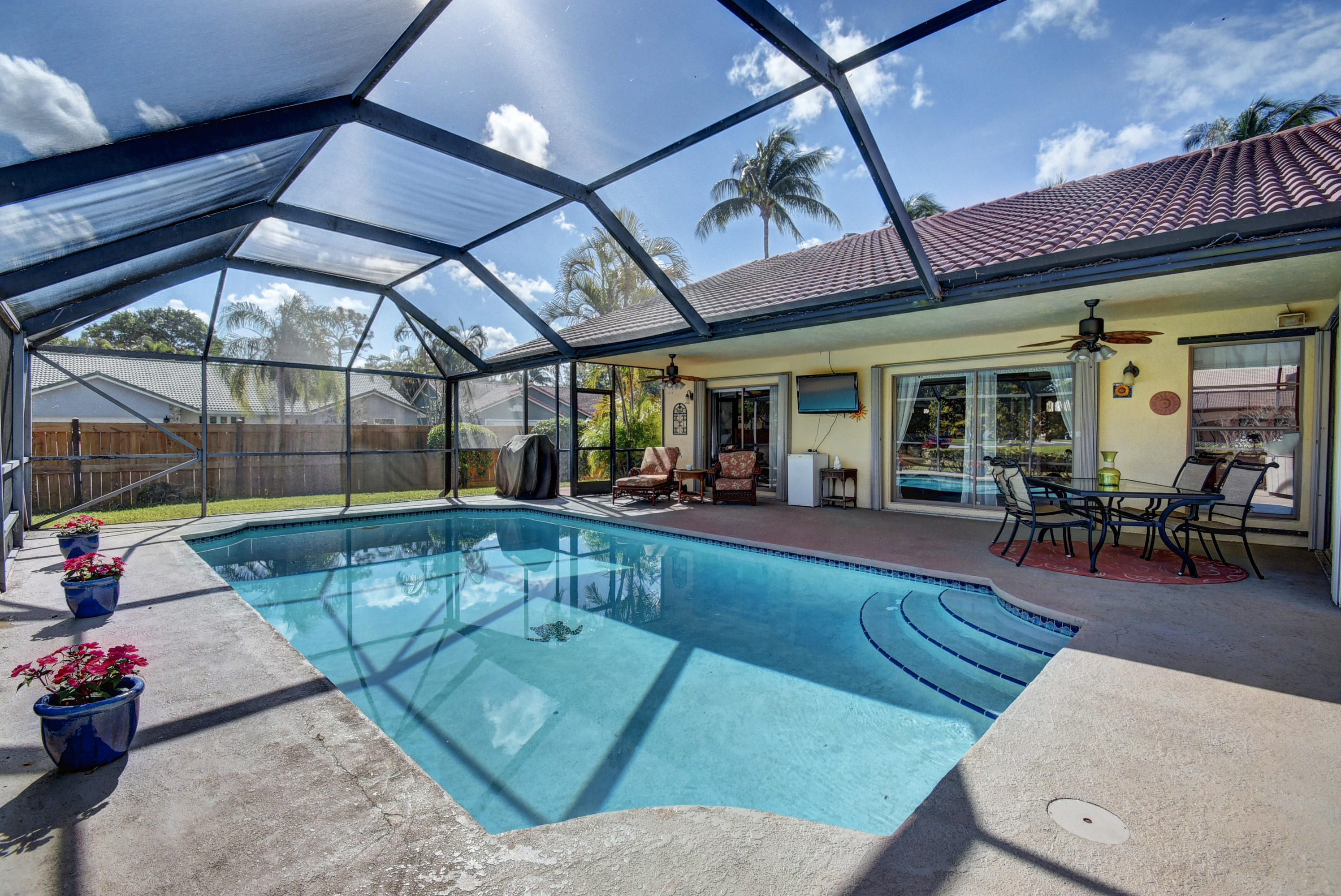 SPECTACULAR LAKE FRONT screened pool home offers complete PRIVACY on premium CORNER LOT in 24-hour GUARD GATED community with serene lake and pool views from every main room in the house. Fenced side yard is perfect for pets and play area. Bright and open kitchen/family room with wrap-around counter bar and breakfast area. Home has (3) sets of sliding glass doors that open to large covered poolside LANAI which is perfect for entertaining. UNIQUE OPEN CONCEPT SHOWER in master suite with double sink. Jacuzzi tub/shower in second bath. All bedrooms have large walk-in closets and (2) with built-ins. Banana and avocado trees in back yard. LOW HOA $125/mo. Great location walk to restaurants and shopping. NOT TO BE MISSED! This could be your perfect Floridan home.