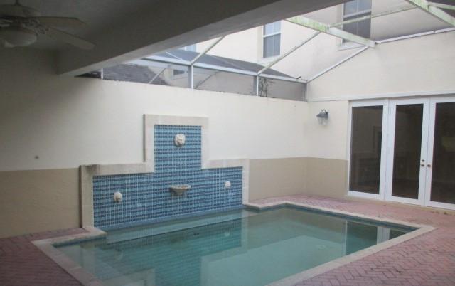Beautiful townhome with a private pool featuring golf course views, an upgraded kitchen, French doors, tile floors downstairs, wood laminate floors upstairs, dual acs, crown molding, updated bathrooms, and a screened patio and pool overlooking the golf course. Woodfield Country Club is a gated mandatory membership community with resort style amenities including a clubhouse, pool, tennis, spa/salon, fitness center, dining and golf.