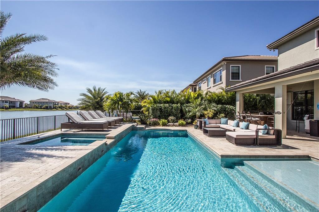 WATERCREST LAKEFRONT SOMERSET EXPANDED MODEL WITH CUSTOM POOL & SPA. LOOKING FOR NEW CONSTRUCTION BUT DON'T WANT TO WAIT TO BUILD? DESIRABLE OPEN CONCEPT FLOOR PLAN LEADS TO A CUSTOM POOL/ SPA WITH TRAVERTINE PAVERS & SUMMER KITCHEN. OUTDOOR INSECT MIST SYSTEM. PERFECT FOR ENTERTAINING. 4 BED/3 1/2 BATHS + OFFICE/DEN. KITCHEN WITH SS APPLIANCES, DOUBLE OVENS, LG ISLAND, GRANITE,IMPACT GLASS. FENCED YARD W/EXTENSIVE LANDSCAPING FOR PRIVACY, TRULY A TROPICAL PARADISE WITH A RELAXING VIEW OF THE WATER.