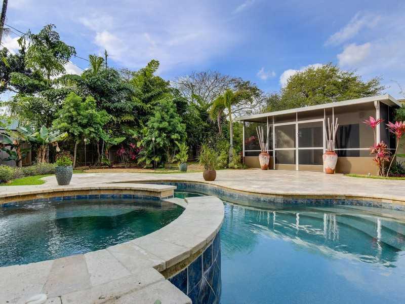 Accepting back up offers. In sought after Poinsettia Heights, neighborhood of the year. Home is perfect for entertaining. Beautiful wood floors, wide open space, areas for the kitchen, dining room with a bar area, large living room looking onto oversized lot with a gorgeous backyard & stunning heated jacuzzi pool, media room-den lined with closets & windows. Yard is embellished with mature tropical landscaping, gardens & water features. Newer roof,& AC, 2-mi to Beaches, Shops, Restaurants, Wilton Manors.