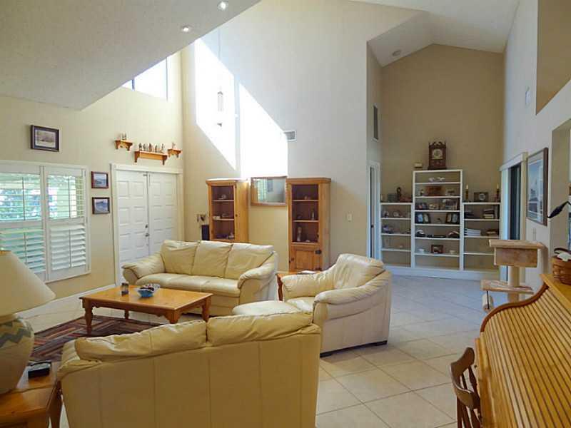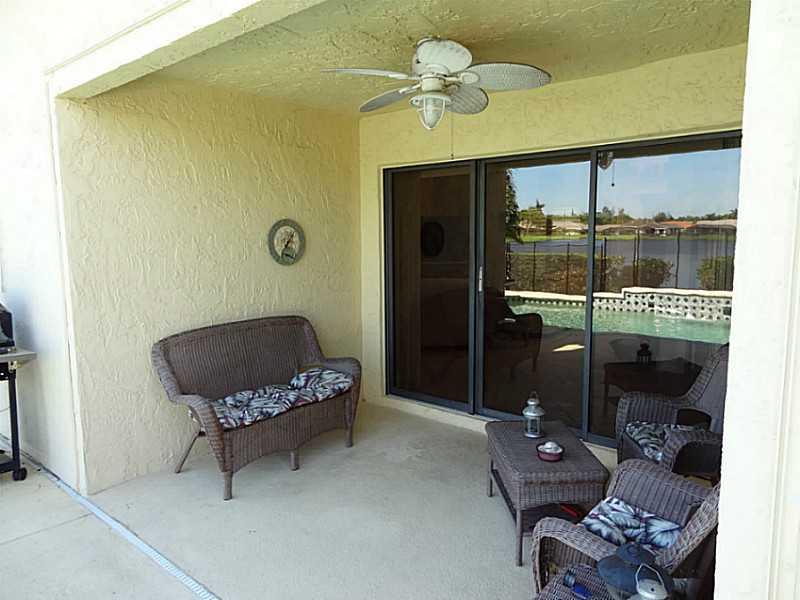 Lake front home with amazing view. Soaring ceilings in this split 3 bedroom, 2.5 bath home. Two zone a/c with one replaced in 2011 and the other in 2006. Newer kitchen and brand new laundry including washer & dryer. Appliances under maintenance contract. Jeld Win double pane, wind resistant windows with Fabric Shield hurricane panels by Phantom. Large pool deck with heated pool overlooking beautiful lake. New lake fed sprinkler system. Great school district; convenient, desirable location. Very low HOA.