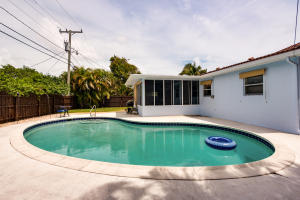 BEST PRICED POOL HOME IN EAST BOCA! LOOK NO MORE! TASTEFULLY RESTORED MID-CENTURY POOL HOME. FRESHLY PAINTED 3 BEDROOM 2 BATH HOME WITH ORIGINAL WORKING FIREPLACE AND A SPACIOUS OUTDOOR FLORIDA ROOM OVER LOOKING POOL WITH PASS-THROUGH TO RENOVATED KITCHEN FEATURING CUSTOM CABINETS AND GRANITE COUNTER TOPS. RESTORED AND POLISHED TERRAZZO FLOORS THROUGHOUT. LARGE 1 CAR GARAGE WITH SEPARATE OVERSIZED LAUNDRY ROOM WITH AC AND GRANITE COUNTER TOP WORK SPACE. BOAT AND RV PARKING WITH DOUBLE GATE DOORS. BEAUTIFUL MATURE LANDSCAPING. 5 YEAR OLD TILE ROOF RECENTLY RESEALED. NO HOA! A-RATED SCHOOLS! WALK OR BIKE TO BEACHES, RESTAURANTS, SHOPS & FAU. THIS IS A MUST SEE HOME! INVESTORS: GREAT INVESTMENT PROPERTY WITH 7-8% CAP RATE. RENTS FOR 2700-2800/MO.