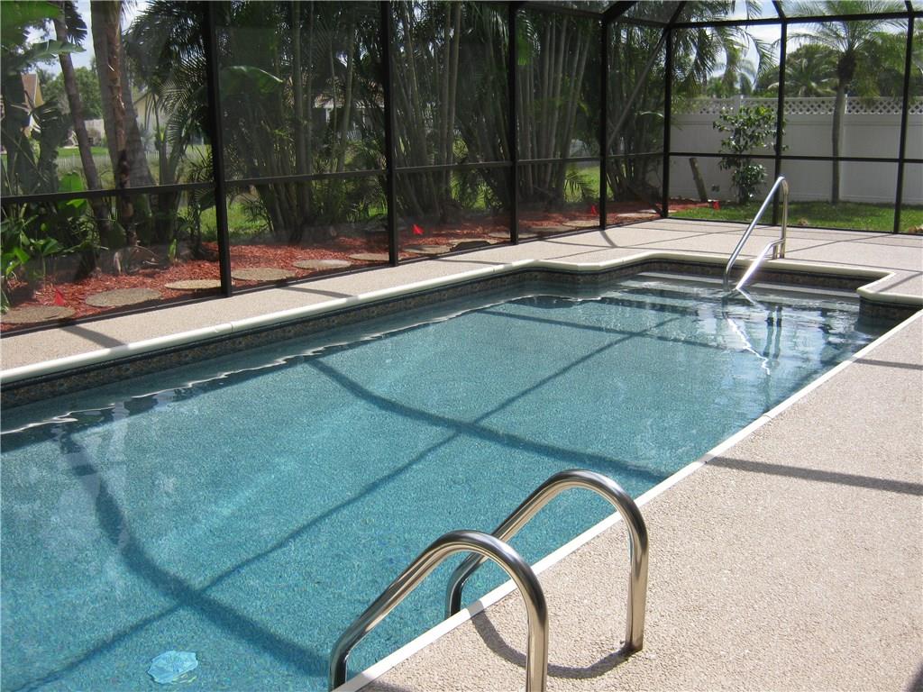 Beautiful 2/2 renovated home w/oversized 2 car garage & huge screened in pool/patio. Remodeled kitchen w/granite counters, stone backsplash, & brand new Whirlpool appliance package. Open floor plan layout w/tile in living areas & laminate in bedrooms. Freshly painted in & out, renovated baths. French doors in FL room & master bedroom that open to patio/pool area. New sod & sprinkler pump, with Colonial hurricane shutters & generator hookup.