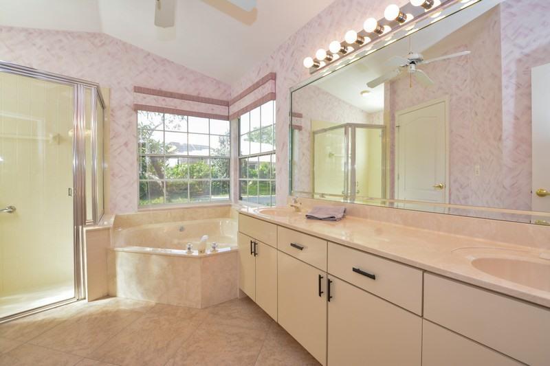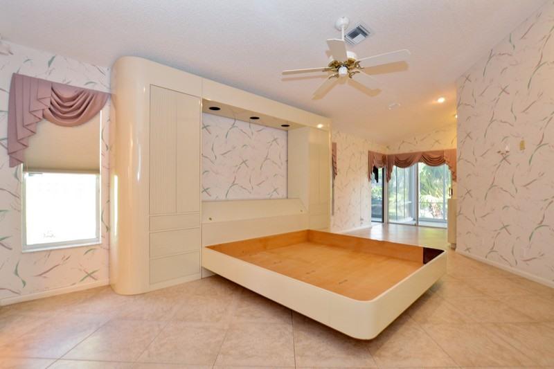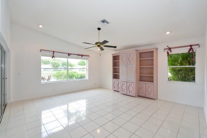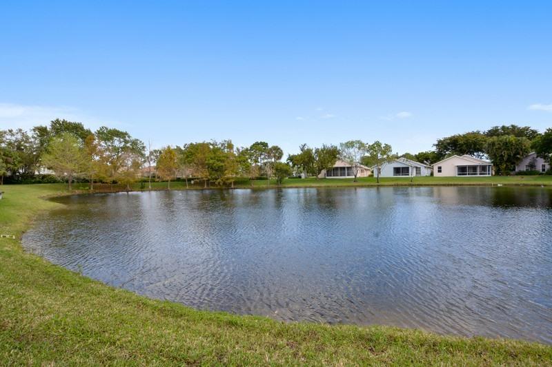 BRAND NEW ROOF completed March 2017. Walk into this immaculate ranch style split floor plan with expansive water views from several rooms of the home. Enjoy a great screened in oversized back patio where you can relax overlooking the serene water view while sipping a cup of coffee or glass of wine. The large master suite is complete with water views, double vanities, walk-in shower, roman tub and plenty of closet space with 3 closets. The open kitchen features granite countertops with tall kitchen cabinets and an eat-in breakfast bar. The home is complete with accordion storm shutters. Amenities include two heated pools, children's pool with playground, performance center, tennis courts, and more! All info is approximate.