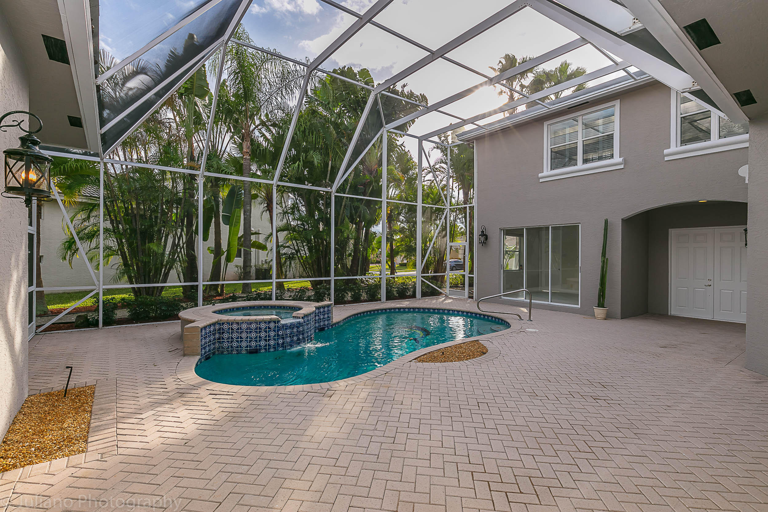 Rarely available and truly magnificent 2 story courtyard style home with a pool on a lake in the Shores of Boca Raton. Grand home with a circular driveway, stunning lake views, 3 car garage, pool, 3421 sq ft under air. Spacious first floor features an open tiled living room and dining room, views of the lake and the courtyard, master suite with 2 white built in closets, open kitchen with brand new appliances, half bath, a storage area under the remodeled staircase. Ideal 2nd floor features a large living/play room area, a split floor plan 2 bedrooms, 2 bathrooms, views of the courtyard. As you walk in the courtyard, the 4th bedroom and a full bathroom is separate from the main house and makes an excellent guest suite. Enjoy sunsets on the lake. Come and see this breath taking home today