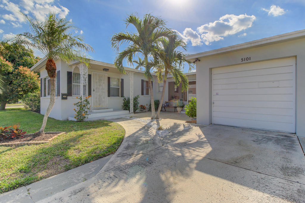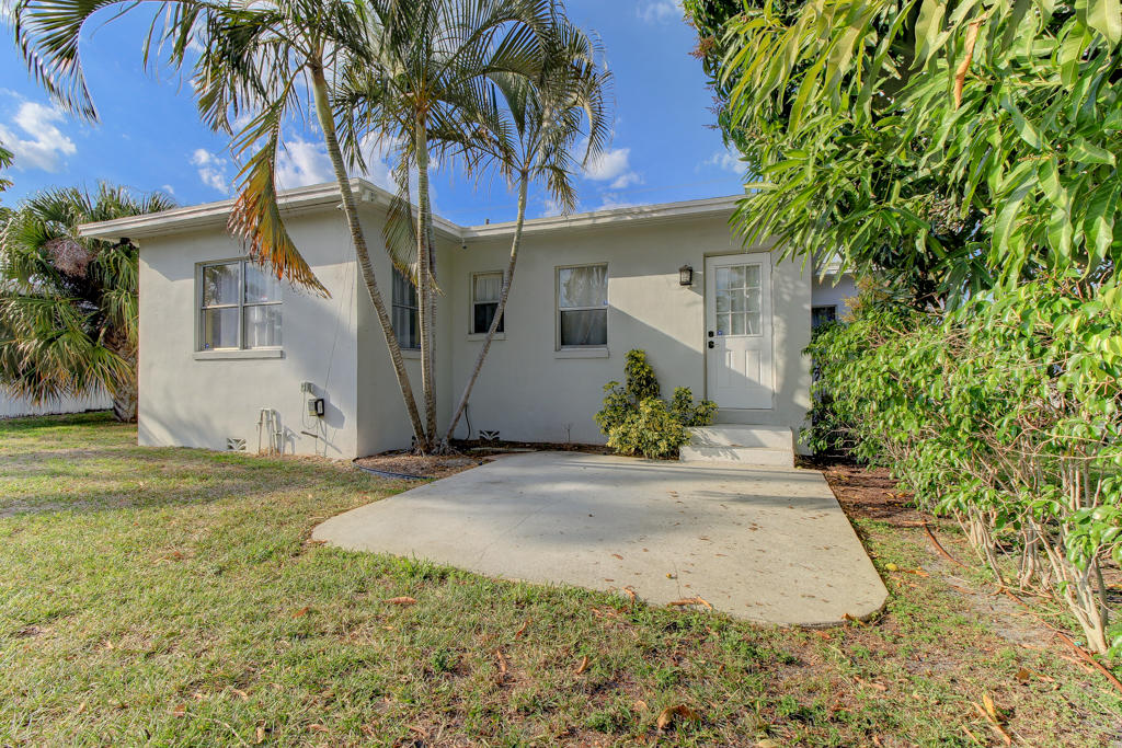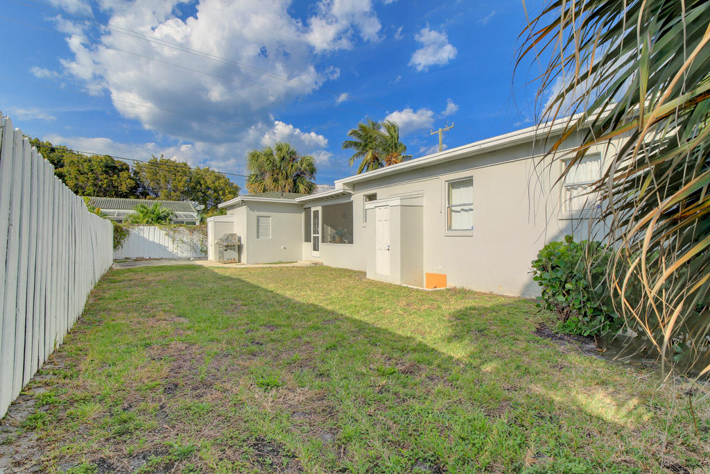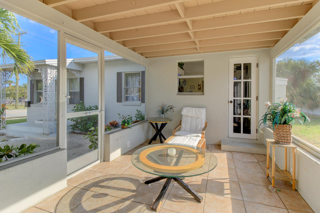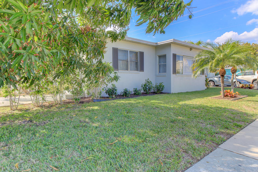 Dream of Old Florida while living in this lovely CBS home right in the heart of West Palm's Trendiest neighborhood - Northwood. With a long term development plan underway, including apartments, shops and condos home values are sure to appreciate.Immaculate condition, with original refinished hardwood floors. Newer A/C 2/2 in the main home, and the third bedroom is just outside the screened porch. Perfect for a guest room. Updated kitchen with granite counter-tops. Full size corner lot with lush landscaping highlighted with a huge mature mango tree. Plenty of room on the side of the house to park a boat. Dog friendly neighborhood with a fully fenced backyard just waiting for your dog All breeds accepted. This home is fully ready to move in and negotiate for the furniture