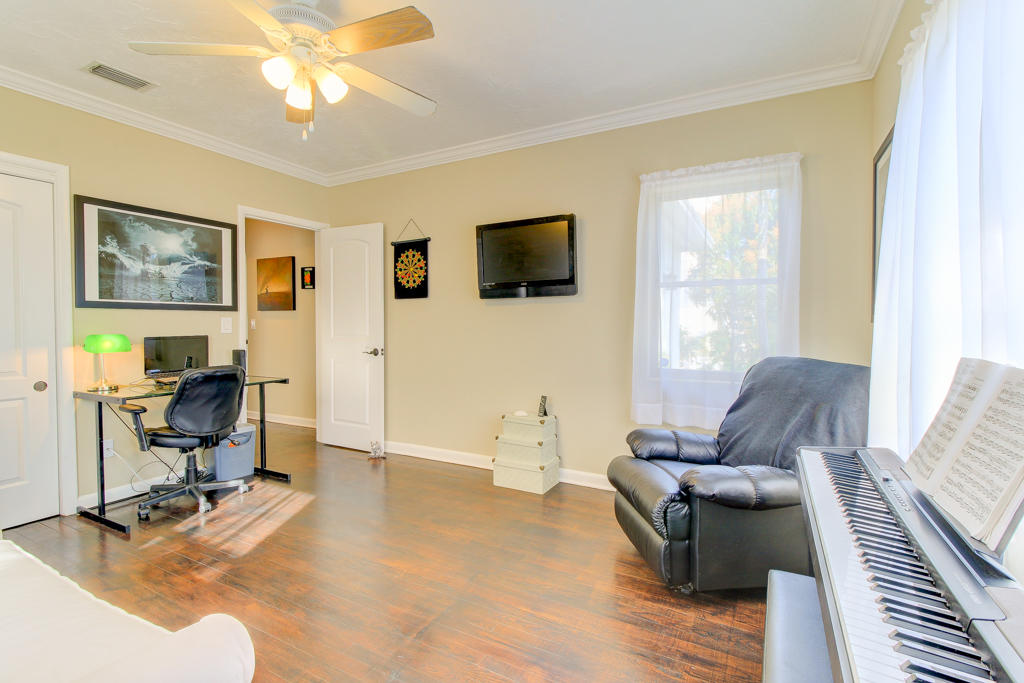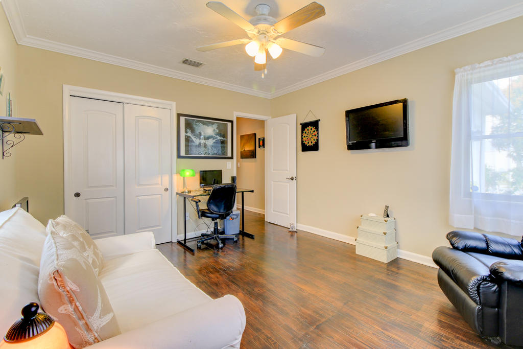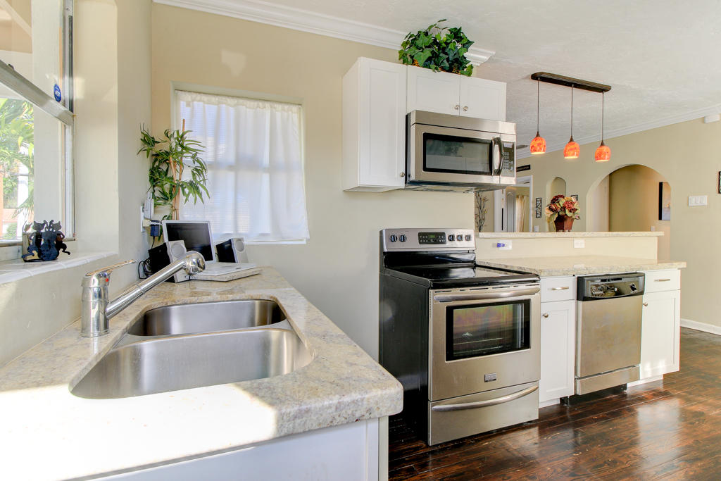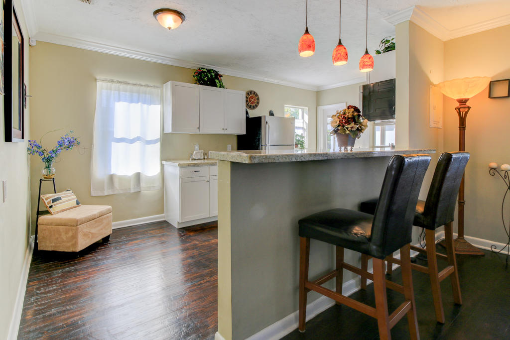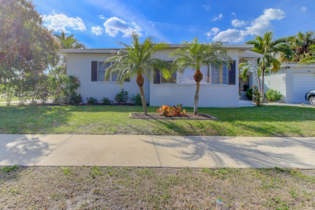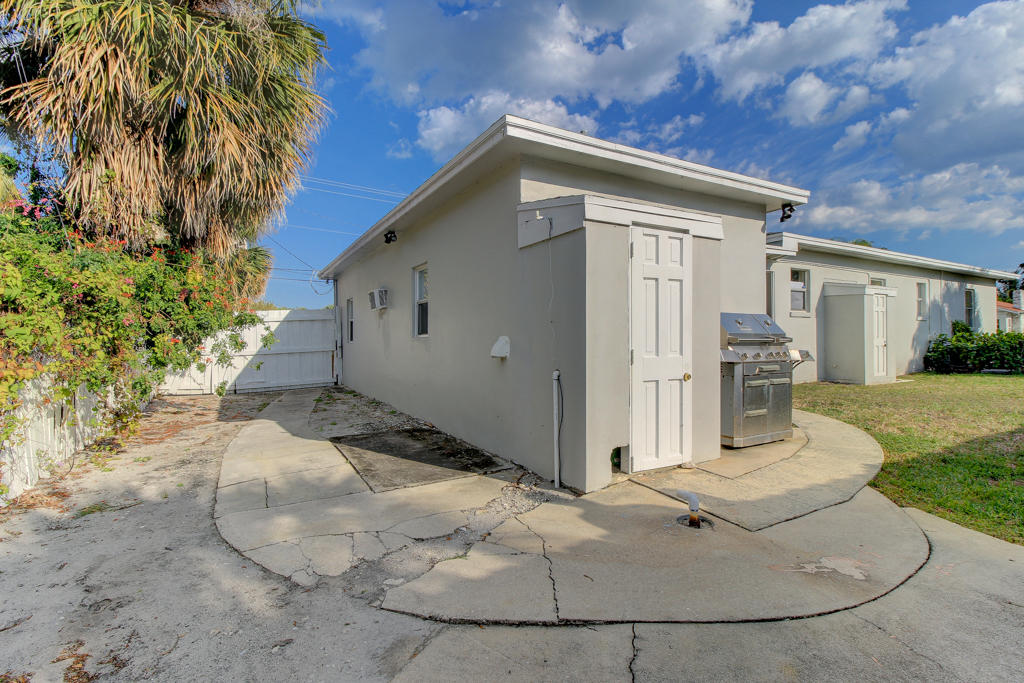 Dream of Old Florida while living in this lovely CBS home right in the heart of West Palm's Trendiest neighborhood - Northwood. With a long term development plan underway, including apartments, shops and condos home values are sure to appreciate.Immaculate condition, with original refinished hardwood floors. Newer A/C 2/2 in the main home, and the third bedroom is just outside the screened porch. Perfect for a guest room. Updated kitchen with granite counter-tops. Full size corner lot with lush landscaping highlighted with a huge mature mango tree. Plenty of room on the side of the house to park a boat. Dog friendly neighborhood with a fully fenced backyard just waiting for your dog All breeds accepted. This home is fully ready to move in and negotiate for the furniture