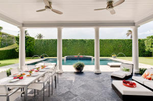 The most outstanding classic Regency estate. Superbly located in the desirable Palm Beach Estate section, with beach access was classically designed by renowned architect, Clarence Mack has been impeccably restored in 2003 and exquisitely expanded to include approximately 11,000 square feet of grand living space which includes beautiful marble and parquet floors. The expansive property with on over a 1/2 acre is surrounded by manicured hedges and gates offering the utmost in privacy. A grand living room with high ceilings, and beautiful moldings overlooks the exquisitely landscaped dramatically lighted property complete with infinity pool/spa and loggia all designed for glorious living and entertaining. Included are staff quarters and a two car garage.