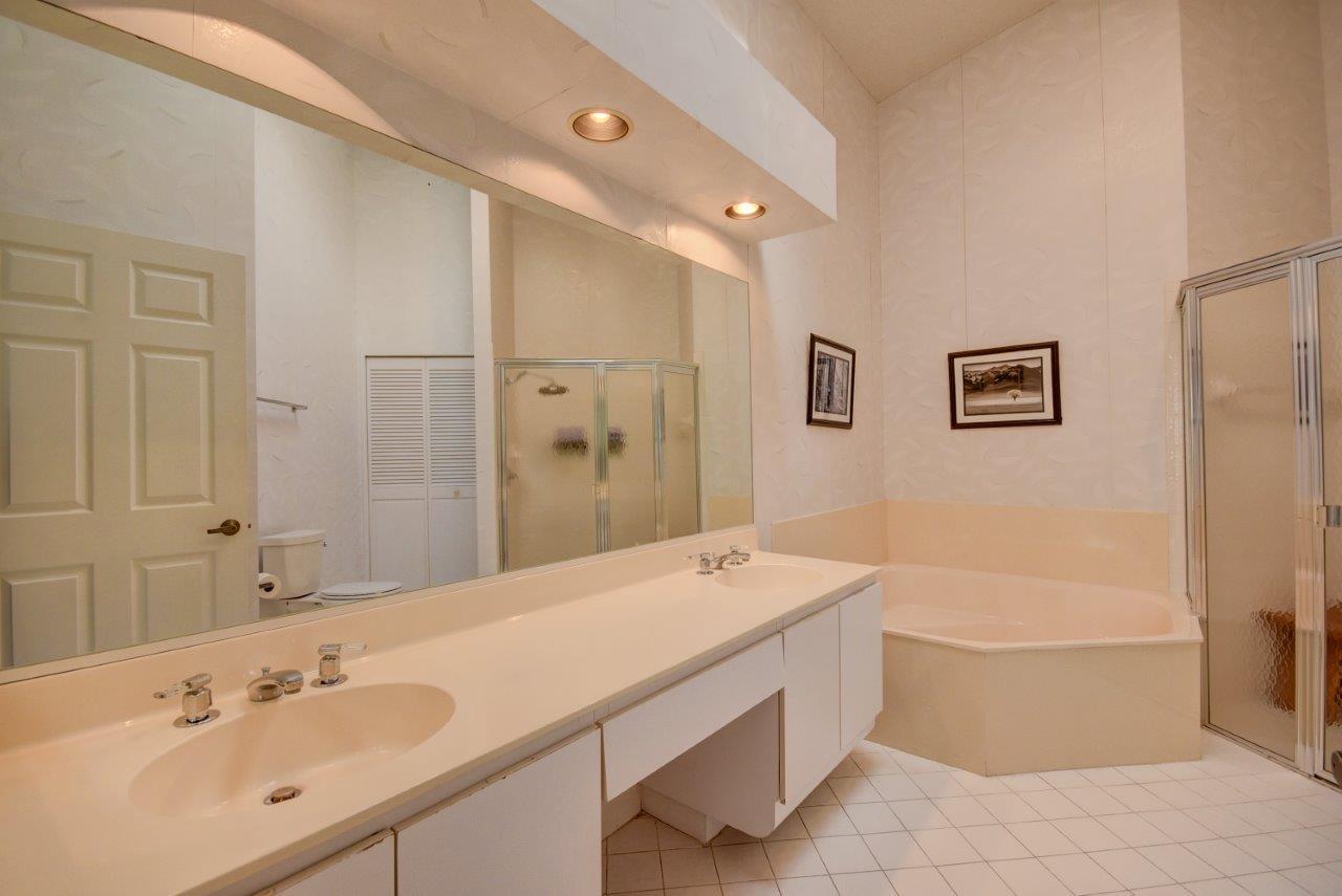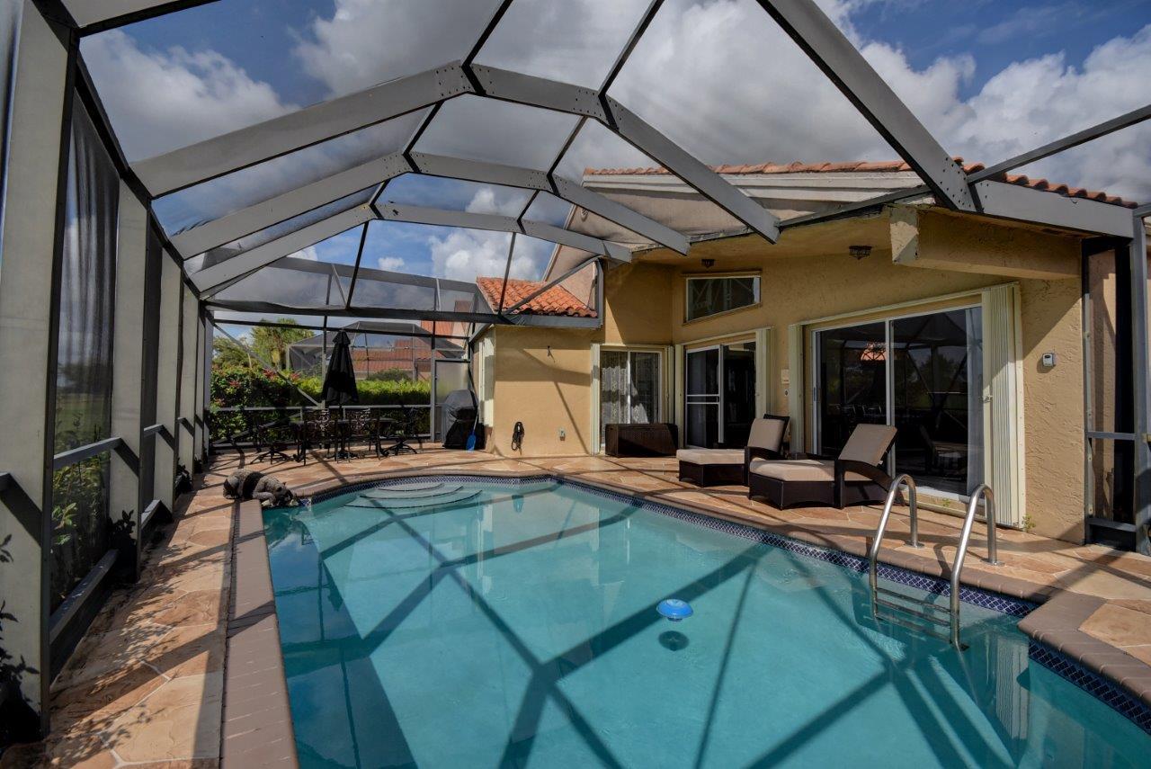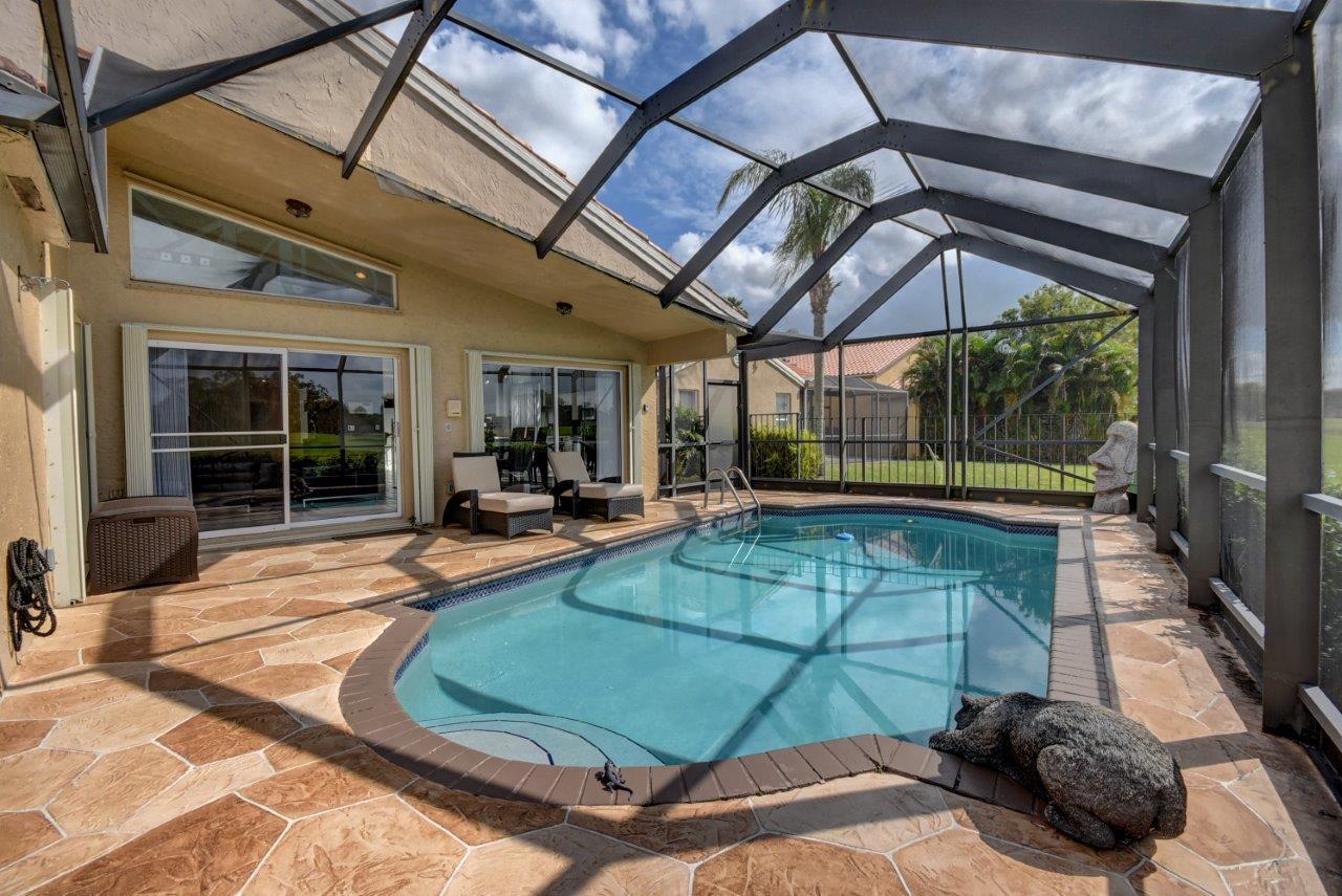 BACK ON MARKET!!!! Reduced $30K for quick sale !! House appraised for $375K!! Cash buyers only, close 30 days!!!! Super Boca location!! Spacious one story 3 BR/2.5 BA, heated pool home in Brentwood Estates with expansive lake and golf views. Entire interior just painted. Step into the foyer and take in the vaulted ceilings and wall of sliding glass doors which make this home so bright and open. Master suite features a private entry, lots of windows, his and hers walk-in closets, glass walk-in shower, and over sized corner Roman tub. White eat-in kitchen features newer Samsung stainless steel appliances, breakfast bar and large pantry. The 2nd bedroom is quite spacious, and can easily be converted into a 4th BR/den by adding a wall. A/C 2015, newer washer and dryer, and accordion shutters