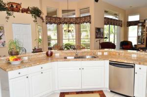 Beautiful-spacious-sprawling lakefront+ pavered screened patio+summer kitchen*Kitchen with granite and stainless steel appliances-huge and overlooks an amazingly large family room*Architecturally stunning*For those that appreciate single-story living,this beautiful home is for you! Very open floor plan with lots of windows+high ceilings*Upon driving up to the home & entering you are greeted by the glass doors & pillared entry. Custom tile(inlay in foyer)in all living areas, expansive ceilings+very open floor plan. The split bedroom plan includes a spacious master suite*Rare extra large master bath with jacussi tub, seperate shower,his & her vanities,step-down shower*Pride of ownership*HOA includes:Multi-milllion $ guard gated entry*fitness center*resort-style pool*tennis*internet*premium T