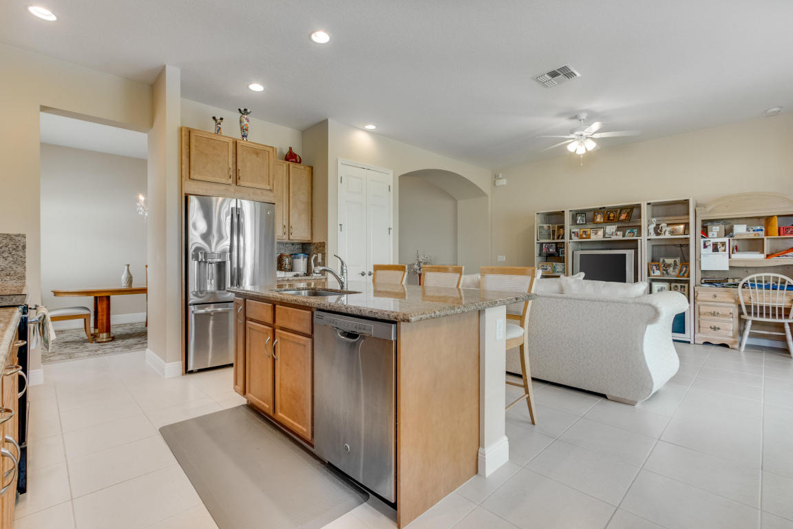 This bright, open and inviting home features a beautiful entry, ceramic tile throughout and volume ceilings. This open floor plan offers 3 bedrooms 2 baths, a formal dining room, a great room and a gourmet eat-in kitchen with upgraded birch cabinets, stainless steel appliances and granite counter tops. You will find a spacious master bedroom with two large walk in closets, dual sinks and over sized walk in shower. Enjoy the peaceful paver patio, lush landscaped backyard with room for a private pool. This resort-styled community features a clubhouse that has something for everyone! You'll find a children's play area complete with a sprinkler park, tennis, basketball, fitness room, billiards room, a Florida room that opens out to a gorgeous pool area and hot tub. Pets are welcomed!!!
