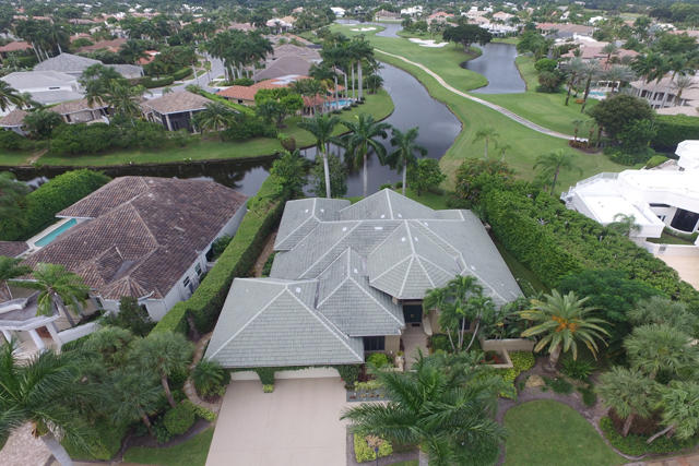 Beautiful, decorator-designed Contemporary one-story estate home offers long & lovely lake & golf views, IMPACT GLASS, high-end finishes, marble floors, split-bedroom floor plan, phantom screens, sun shades, French doors, and more. A spacious great room with living room, bar, and dining room areas is enhanced by high ceilings and lots of windows that showcase the expansive lake & golf views. The chef's kitchen (Thermador GAS stove & double oven, Bosch dishwasher, trash compactor & granite countertops) opens to the family room and breakfast area. The large master suite has a sitting area, his & her bathrooms, & generous walk-in closets. A guest wing includes 3 en-suite bedrooms. Outside, a screened-in lanai with Summer kitchen, open patio areas, a large pool, and long lake & golf views.