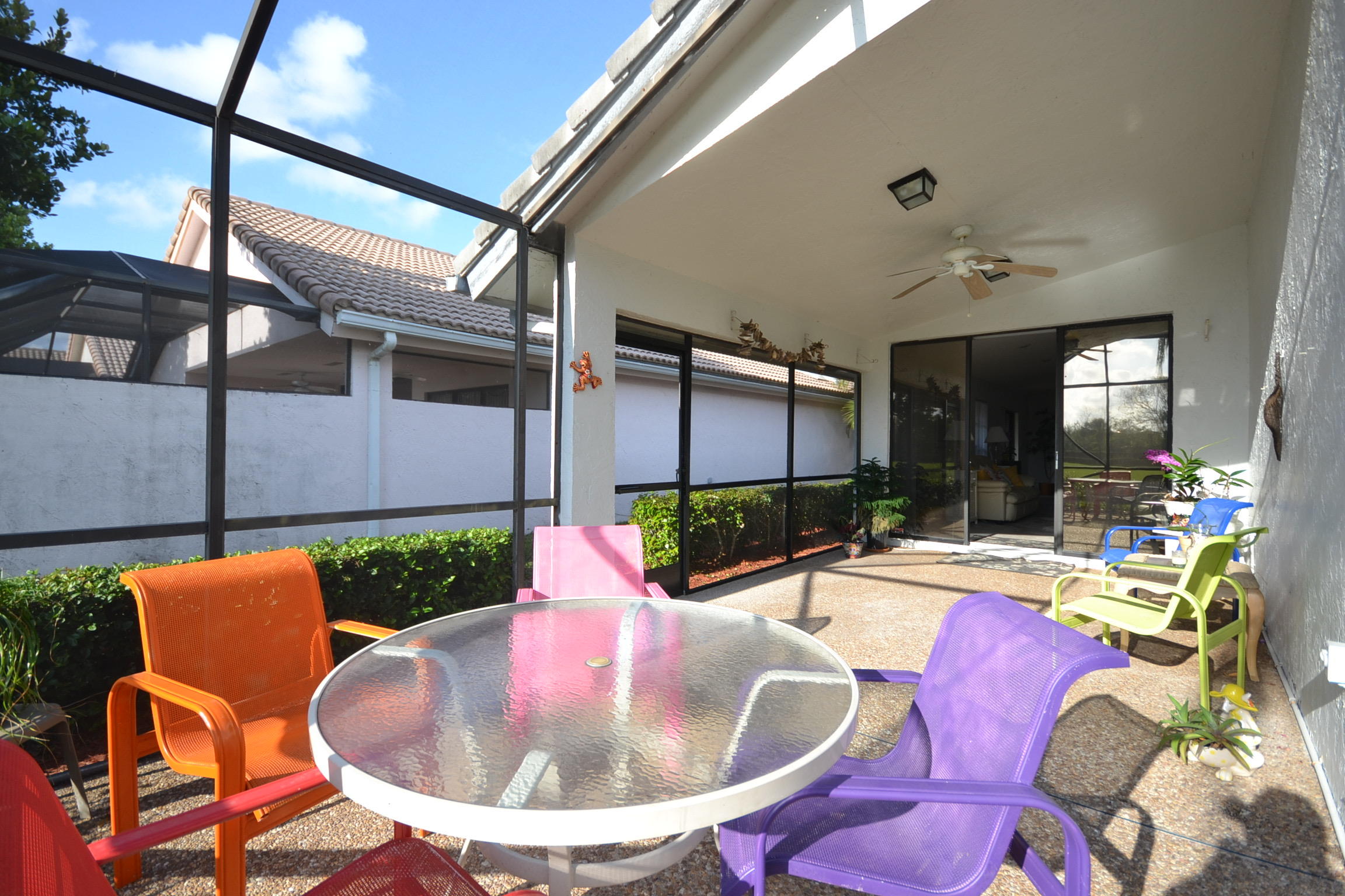 RARE OPPORTUNITY TO OWN A WATERFRONT FRONT ENTRANCE PATIO HOME! GREAT SETTING W/ BEAUTIFUL SUNSETS! BACKS TO THE 5TH FAIRWAY OF THE WOODS GOLF COURSE IN BOCA WOODS COUNTRY CLUB! FABULOUS UNIQUE OPEN FLOOR PLAN, HIGH VOLUME CEILINGS, HUGE GREAT ROOM & MASTER BEDROOM SUITE W/2 WALK-IN CLOSETS & MULTI-ROOM BATH - KITCHEN WITH WONDERFUL ALMOST NEW UPGRADED STAINLESS STEEL APPLIANCES - DEN (COULD BE 3RD BR) & 2ND BEDROOM W/SLIDERS TO PRIVATE PATIO, 2 CAR GARAGE - NEW AC 2012 - NEW ROOF 2006 - MODERN & COOL CONCRETE FLOORS & MUCH MORE! MANDATORY GOLF EQUITY MEMBERSHIP REQUIRED - $30,000 BOND FULLY REFUNDABLE WHEN YOU SELL & $30,000 INITIATION, DUES $14,460/YEAR,POA $276/MO + $125/MO DINING MIN - $106/MO SERVICE NO TIPPING ! STRONG RESERVE - 2 GOLF COURSES,PRACTICE GREENS&RANGE...CONT'D