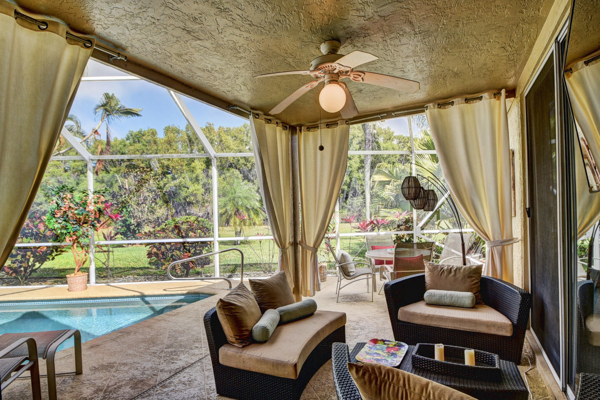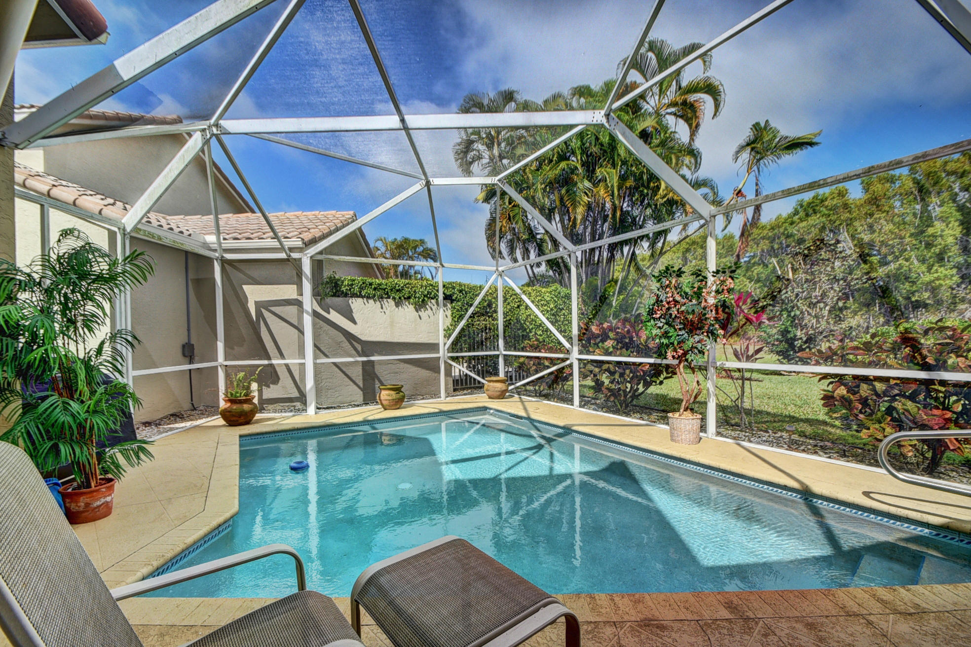 Newport Bay Club a gated community of 225 homes, in the BEST Boca Raton location. This home is in the Copper Lake Section and landscaping is part of your maintenance fee. The 3rd bedroom is an open den/office. The open living area looks out to your private screened pool and patio. The property has beautiful green space behind it is Morekami gardens. The community offers great amenities without equity fees. The clubhouse has a sports center with fitness, indoor racquetball, exercise classes, a heated pool, and 8 lighted tennis courts. VERY active tennis program with a professional on-site Director, tennis staff and Pro Shop. There are both tennis teams and games. go to www.nbctennis.com for tennis info.Furnishings can be had!