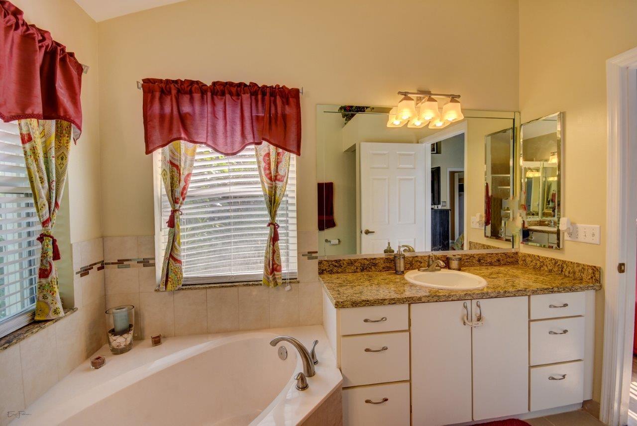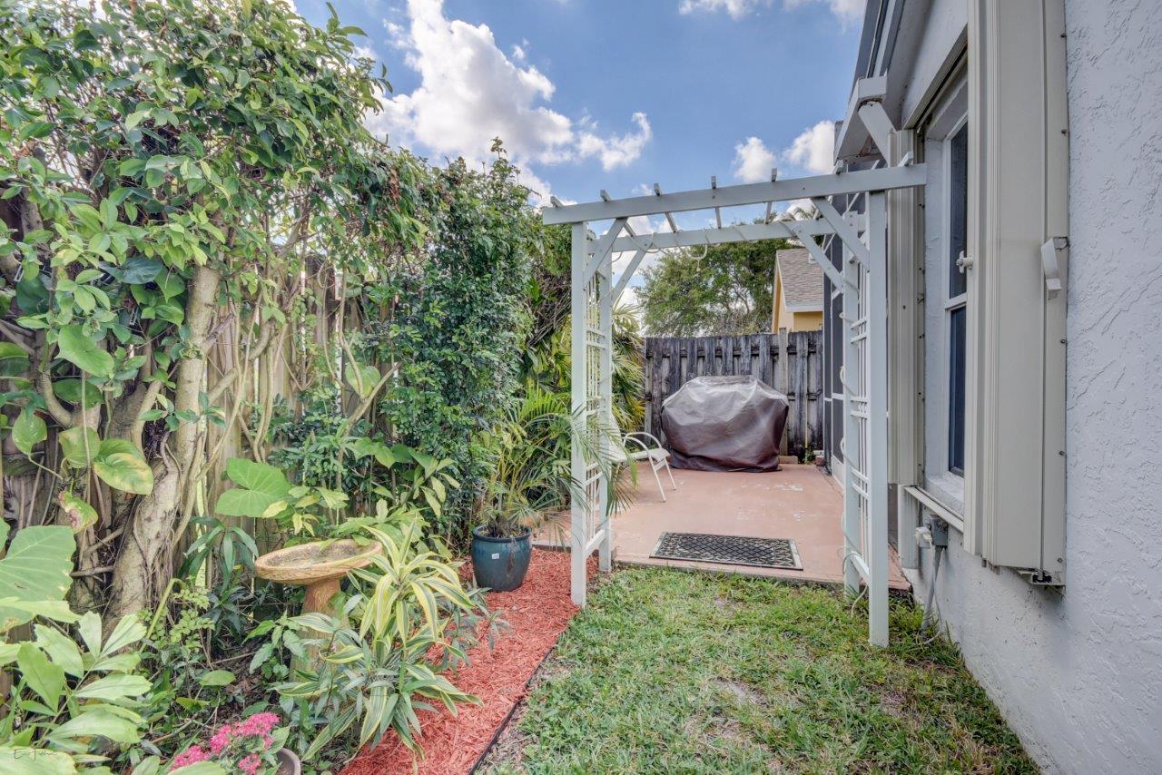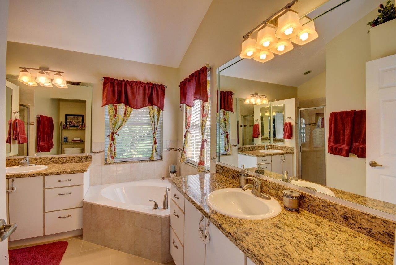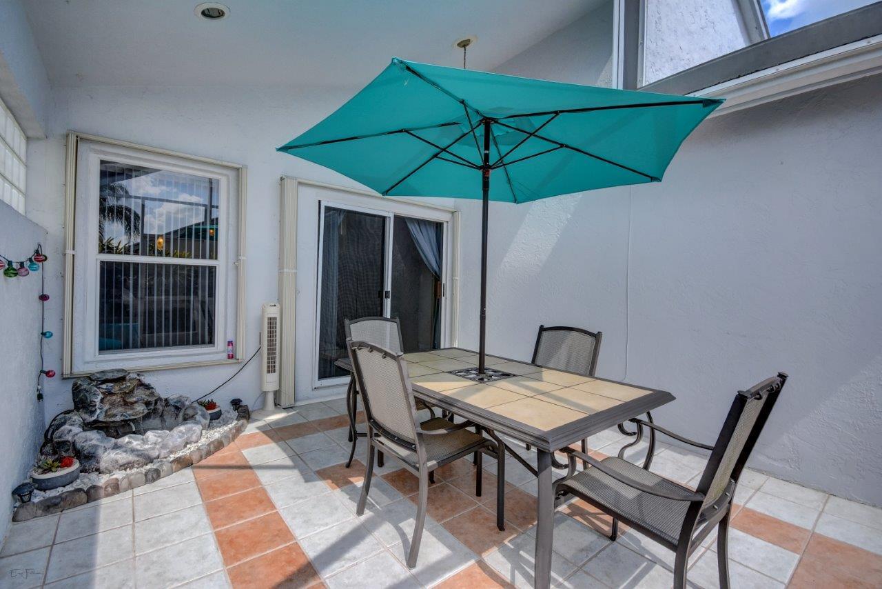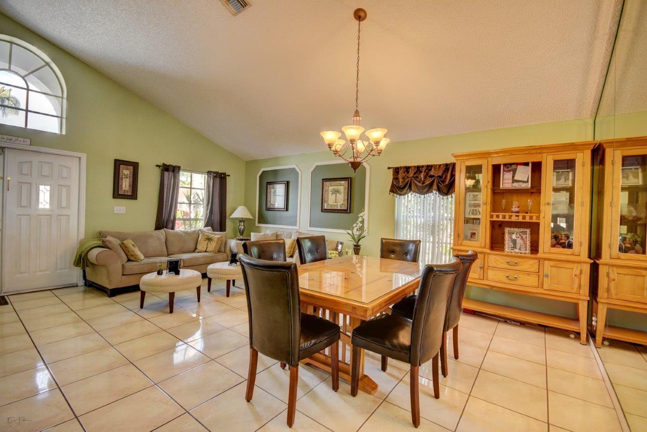 Open bright and spacious 3 bedroom 2 bath move-in ready cul-de-sac home. Beautiful wood cabinets and corian countertops in updated eat-in kitchen. Kitchen has breakfast bar and is open to large family room with vaulted ceilings; 18'' ceramic tile flooring; decorative ceiling fan and walk-out to screened patio that is tiled and partially covered. Entertain in open formal dining/living room. Large master bedroom with updated master bath - granite counters; separate shower and roman tub. 2nd bath also updated with granite and recent skylight. 2nd and 3rd bedrooms are good size and split from master. All bedrooms have quality laminate flooring. Fully fenced back yard with lush landscaping; concrete grilling patio and separate private deck. Accordian hurricane shutters.