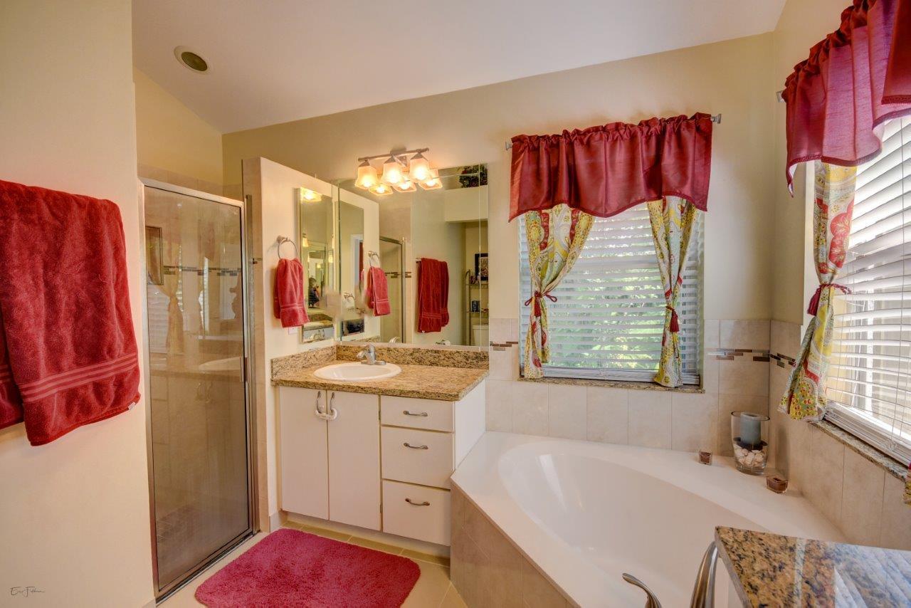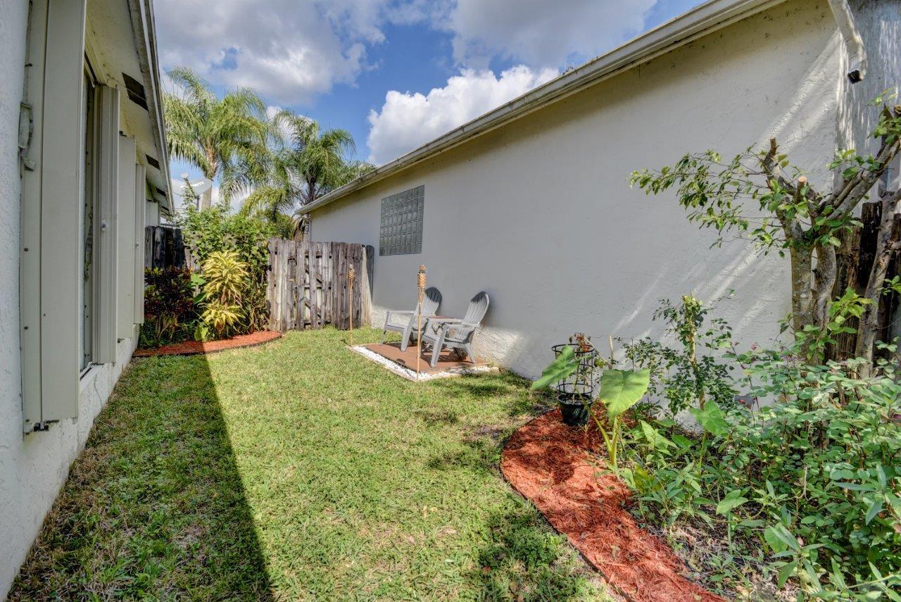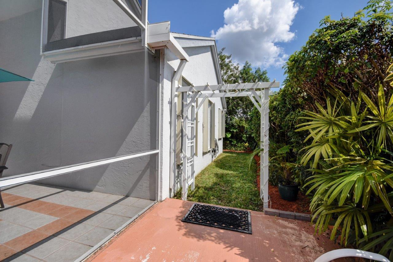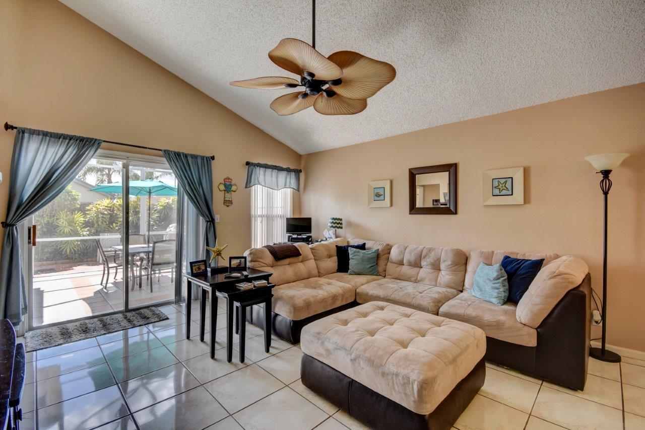 Open bright and spacious 3 bedroom 2 bath move-in ready cul-de-sac home. Beautiful wood cabinets and corian countertops in updated eat-in kitchen. Kitchen has breakfast bar and is open to large family room with vaulted ceilings; 18'' ceramic tile flooring; decorative ceiling fan and walk-out to screened patio that is tiled and partially covered. Entertain in open formal dining/living room. Large master bedroom with updated master bath - granite counters; separate shower and roman tub. 2nd bath also updated with granite and recent skylight. 2nd and 3rd bedrooms are good size and split from master. All bedrooms have quality laminate flooring. Fully fenced back yard with lush landscaping; concrete grilling patio and separate private deck. Accordian hurricane shutters.