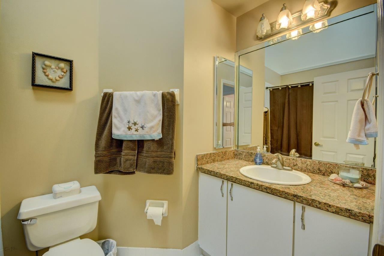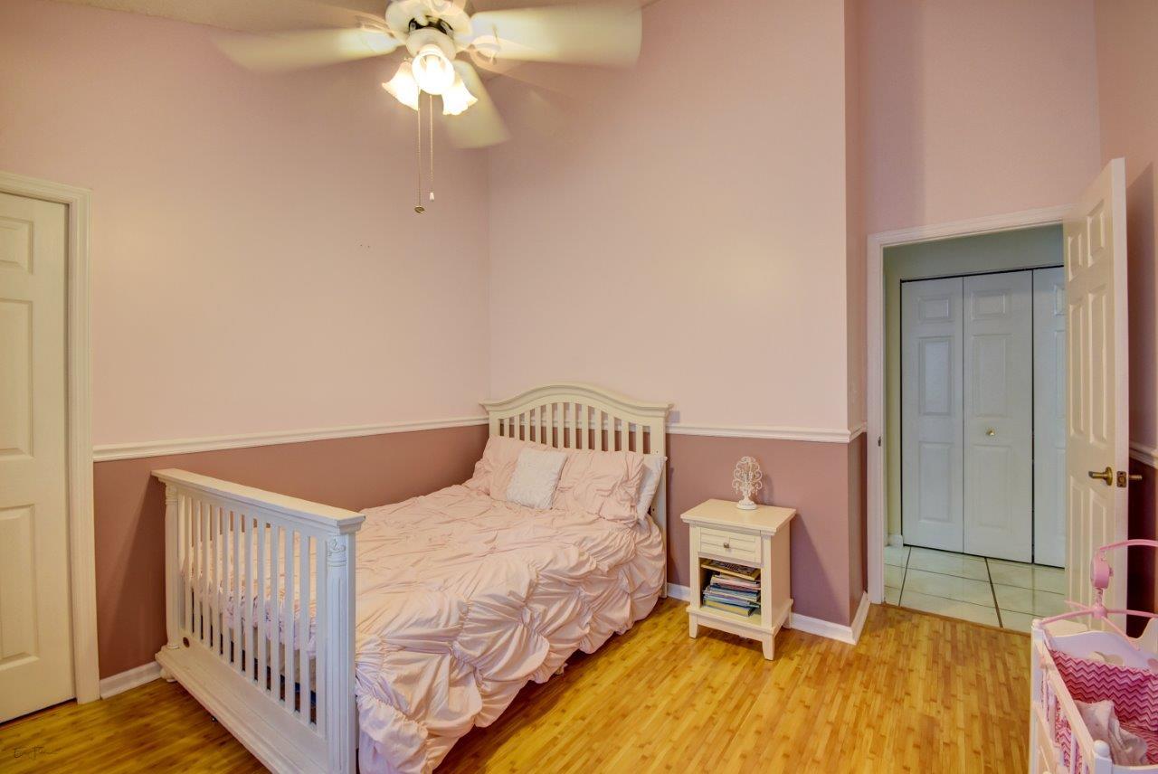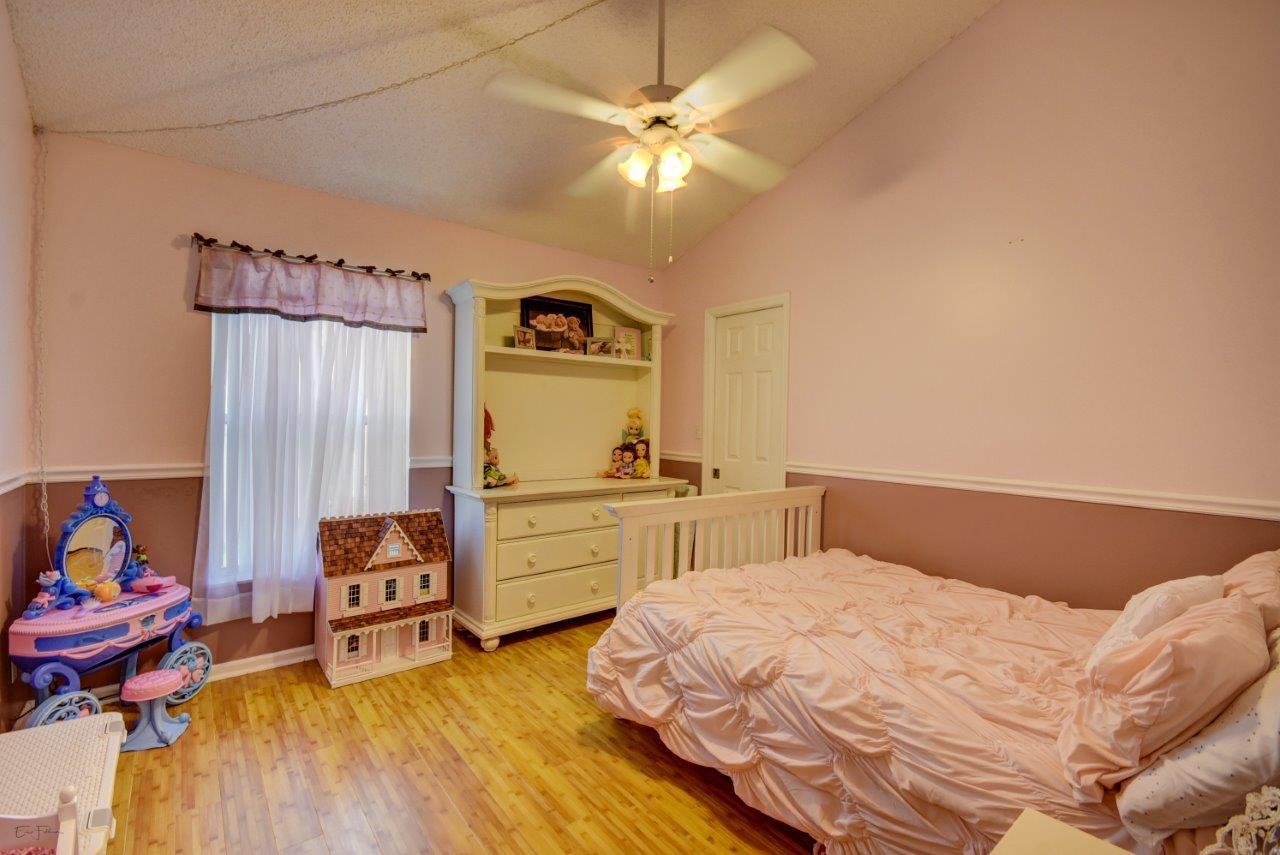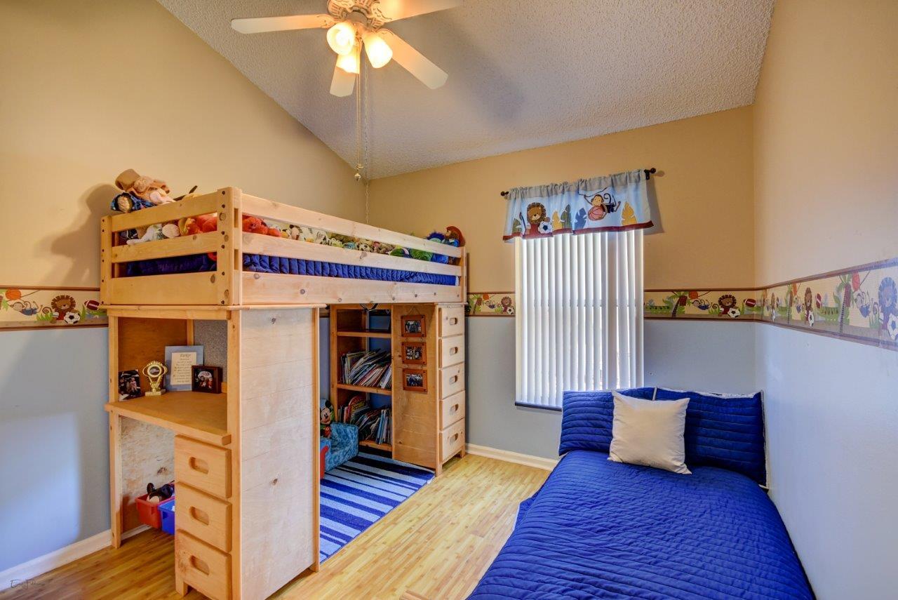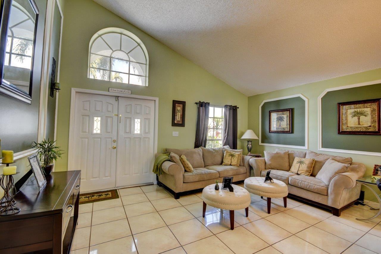 Open bright and spacious 3 bedroom 2 bath move-in ready cul-de-sac home. Beautiful wood cabinets and corian countertops in updated eat-in kitchen. Kitchen has breakfast bar and is open to large family room with vaulted ceilings; 18'' ceramic tile flooring; decorative ceiling fan and walk-out to screened patio that is tiled and partially covered. Entertain in open formal dining/living room. Large master bedroom with updated master bath - granite counters; separate shower and roman tub. 2nd bath also updated with granite and recent skylight. 2nd and 3rd bedrooms are good size and split from master. All bedrooms have quality laminate flooring. Fully fenced back yard with lush landscaping; concrete grilling patio and separate private deck. Accordian hurricane shutters.