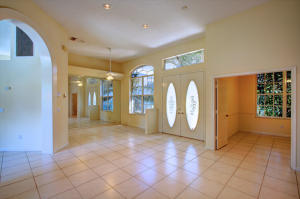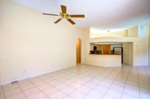 Desirable three bedroom home offers location, location, location!!! Located on Royal Palm Beach Boulevard, home recently upgraded with an open floor plan offering spacious living and dining areas.Dining area opens up to nice-sized screened-in patio over seeing pool and lake.