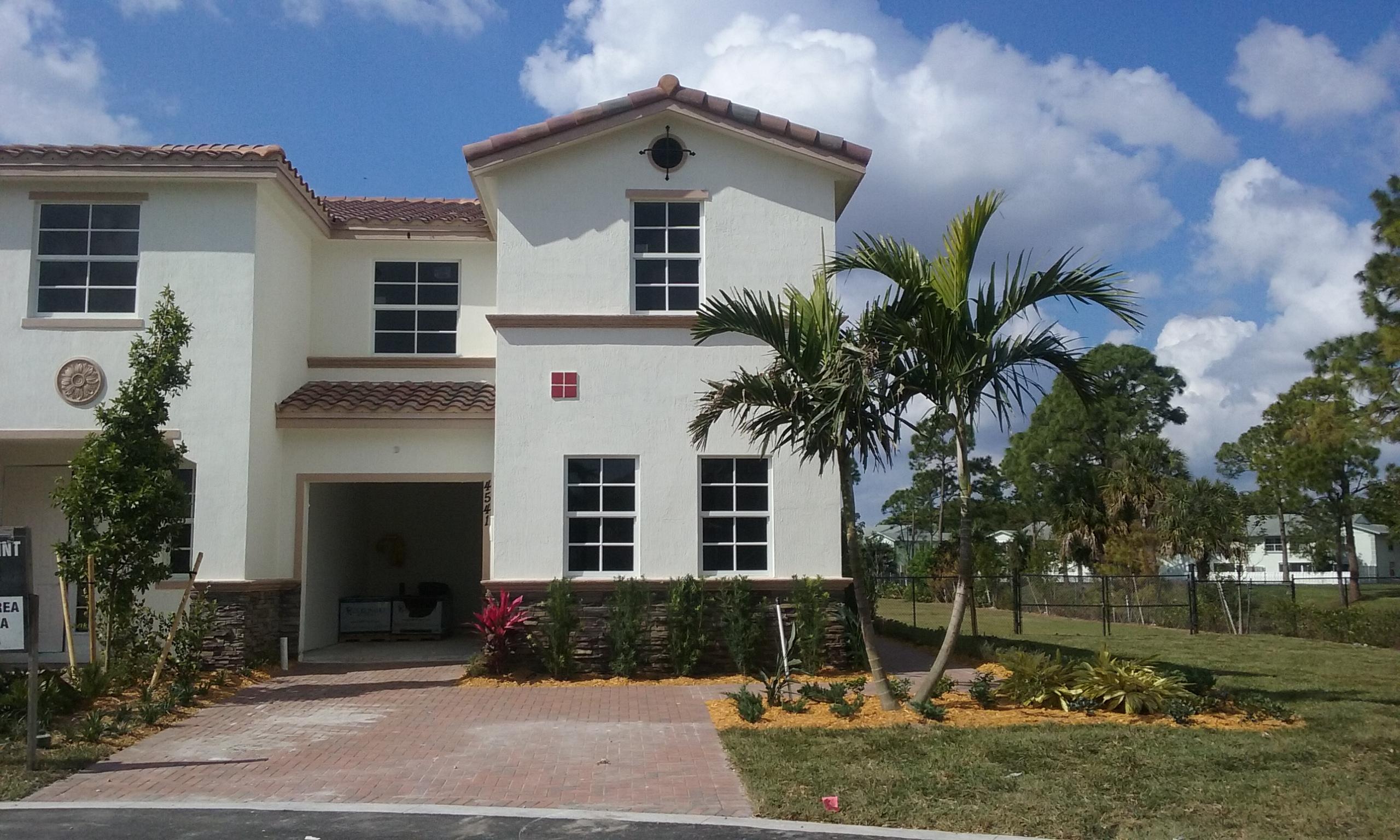 Only Avanti model with Lake View. This 4 bedroom, 3 1/2 bath home has a bedroom with private bath on the first floor. End Unit with extra green area view. Impact glass 1st and 2nd floor, granite counter tops, upgraded level two tile on entire first floor except bedroom, upgraded iron railing, level one upgraded cabinets and much more! Move-in ready. Up to $12,000 toward closing fees when using builder's preferred lender. Brand new construction,gated community with community pool and exercise room. This is a must see! Buyer can still select floor in bedrooms and stairs. Stainless Steel appliances. Located in the heart of W.P.Bch. Less than a mile to the new Baseball stadium. Open daily from 10 to 6 with the exception of Friday 1 to 6. Taxes are an estimate 2016 tax was land only.