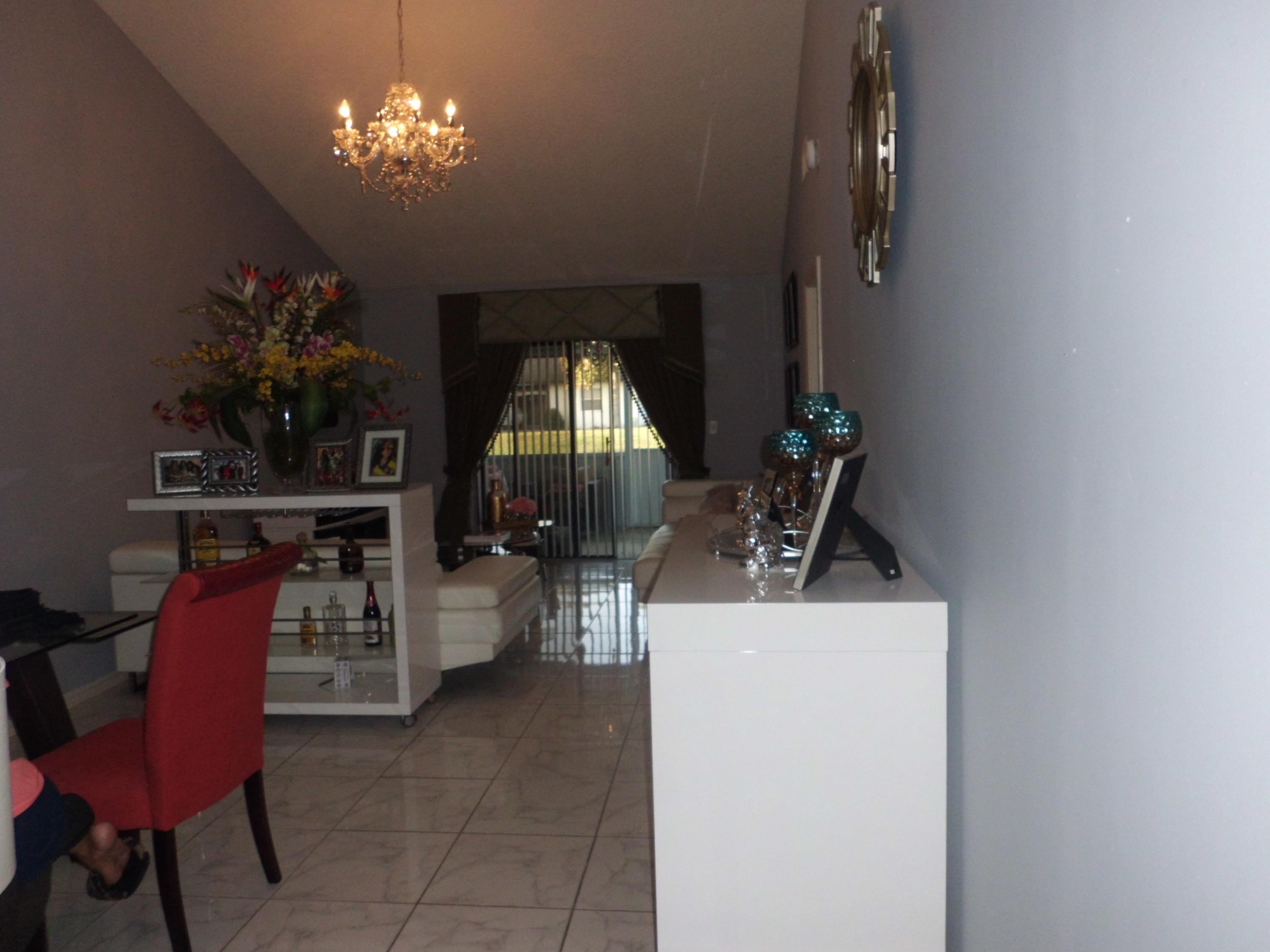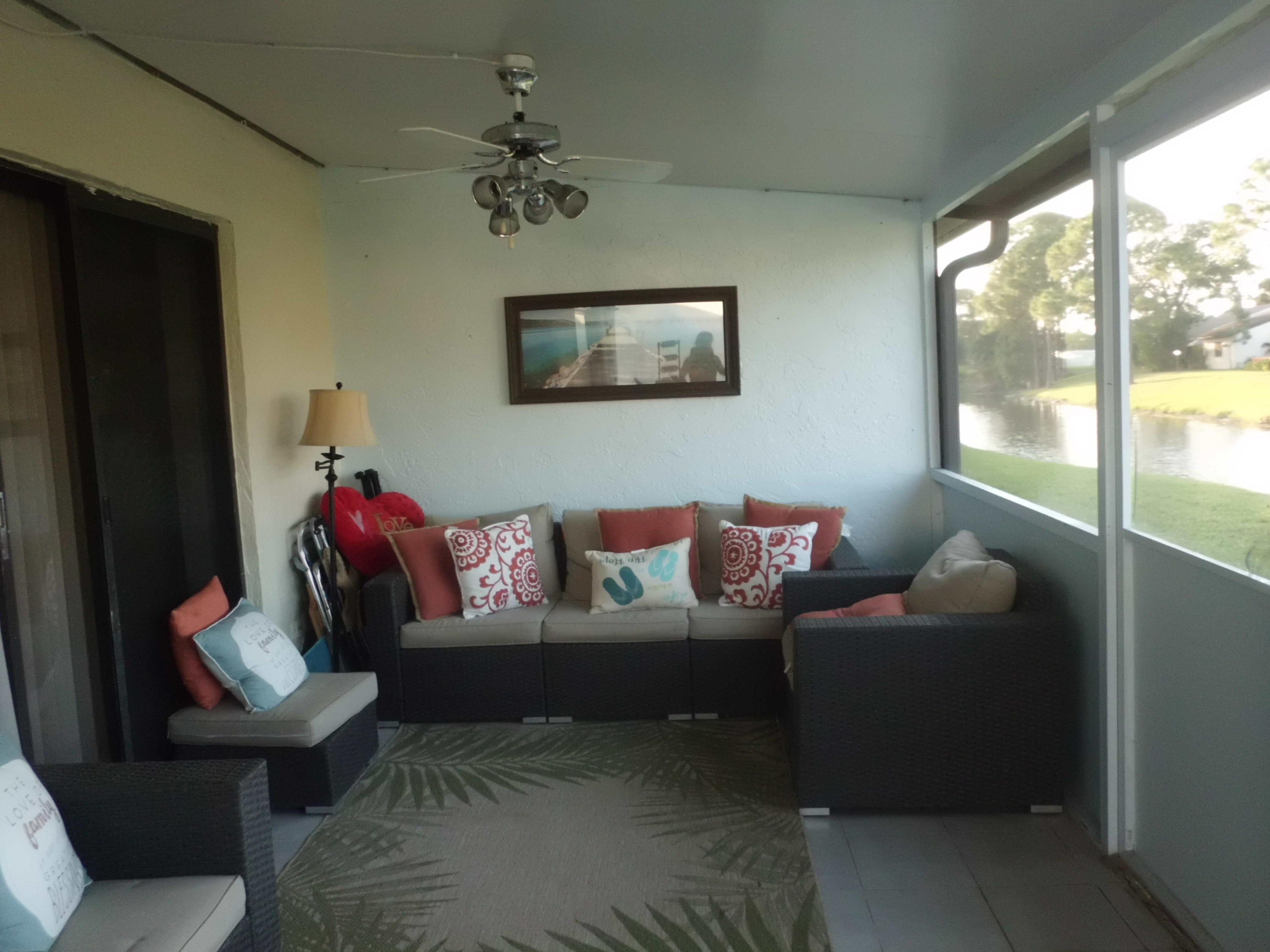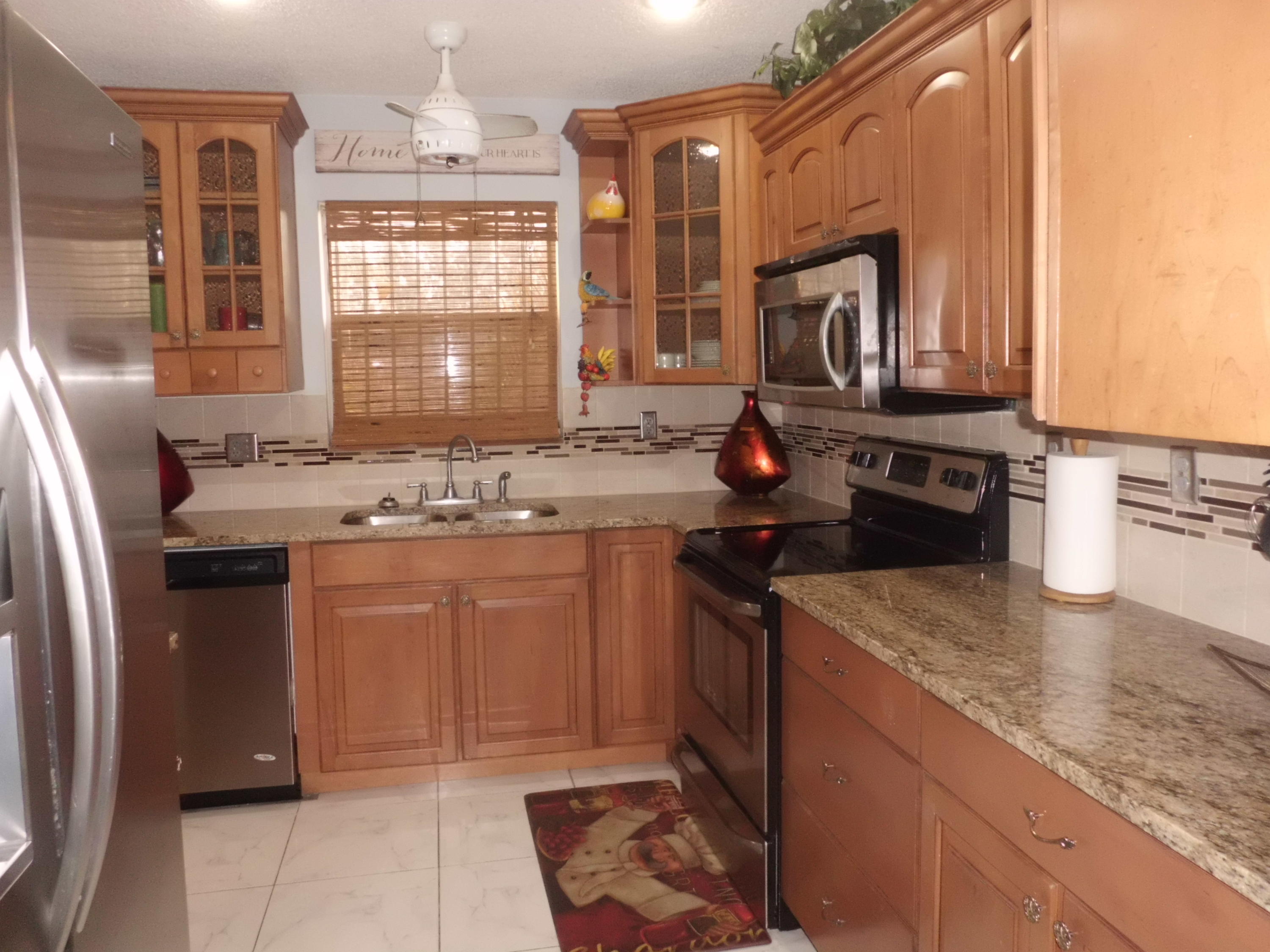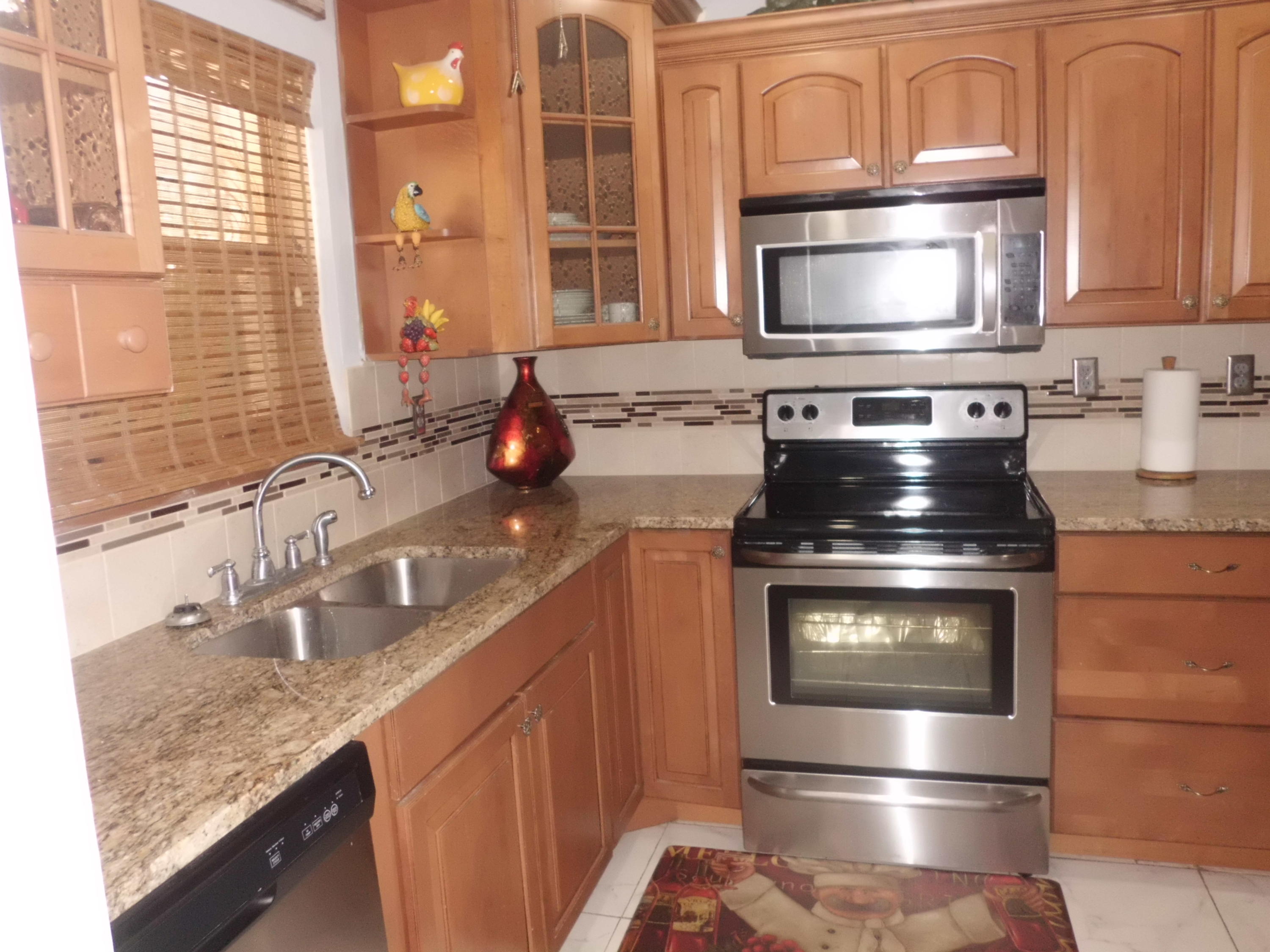 A beautiful 3 Bedroom, 2 Bathroom WATERFRONT Townhouse in West Palm Beach! The exterior of the home features an outdoor Privacy Area in the front entry, and outback a lovely greenspace that looks right over the water! As you enter inside, the first thing noticed is the huge Vaulted Ceilings as well as a brand new coat of interior paint. The Living Room is very open with large white porcelain tiles throughout. The Kitchen is designed with a GORGEOUS wood cabinetry system that provides plenty of storage and has granite countertops to complete the look. The Master Bedroom features Wood flooring a set of sliding glass doors with access to the screened in Patio, a walk-in Closet, and in-suite bathroom with stand up shower. The 2 Secondary Bedrooms are laid out identical, and feature , plenty of