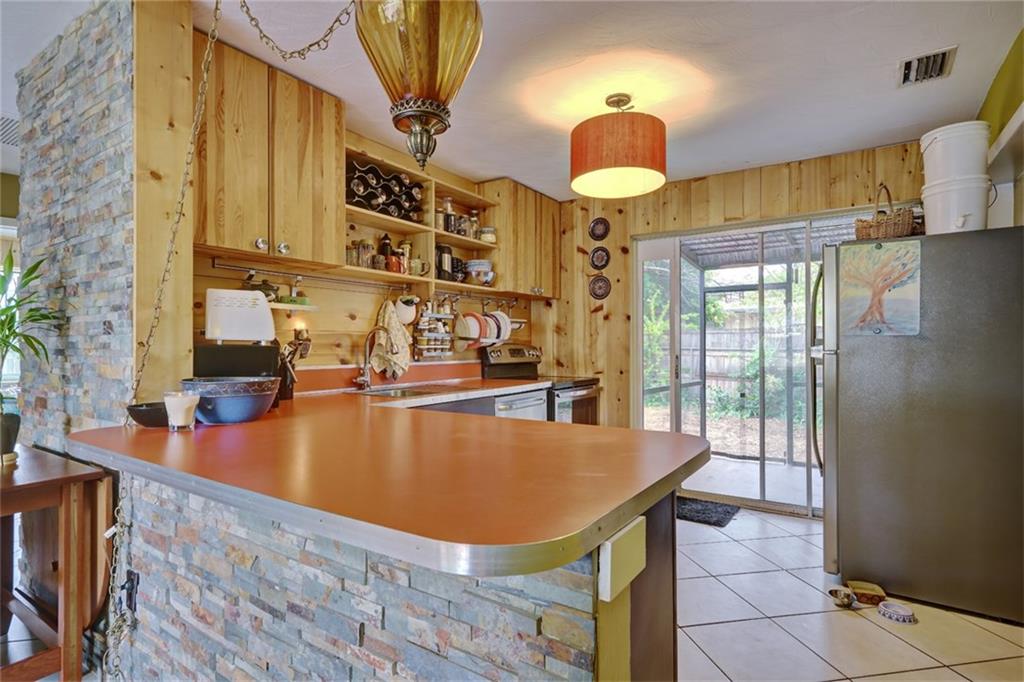 Charming renovated, Mid Century Modern 2 Bed, 1 Bath Home with great light! Open Kitchen with newer cabinets & stainless appliances. Updated bath with newer tile and custom vanity. Split bedroom plan. Neutral tile throughout living area & laminate wood floors in bedrooms. Sliding doors open to large screened porch and fenced back yard with storage shed and lots of room to play. Located in Pompano Beach Cresthaven Subdivision! No HOA and close to everything, beach,shopping,transportation 7 schools.