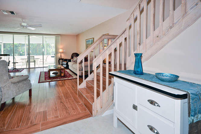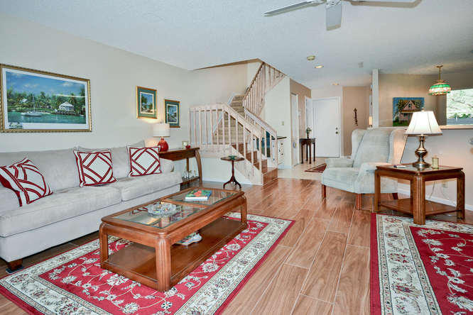 New porcelain tile that looks like wood flooring, Whirlpool SS appliances, alarm system, Kitchen-aid split refrigerator and front loading washer and dryer.Sq footage per owner. Maintenance includes Comcast cable with 7 HBO's, 4 Showtime channels and water. One time annual Boca Del Mar fee of $110. Over-sized updated corner town home with open floor plan, Stainless appliances, Corian sink/counters, eat-in kitchen, walk in pantry, laundry room, large screened patio with lake view, 1 car garage, and a double driveway. This town home comes with accordion shutters upstairs plus panels and a new generator.