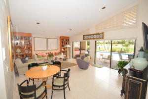 Motivated Seller. Pristine 3 bedroom, 2.5 bath free standing home located on an expansive water & golf lot. Home features updated kitchen with granite, all baths totally renovated, a built-in office adjacent to the kitchen, complete hurricane protection including skylights & garage door & large neutral tile throughout the living area. Spacious pool area has brick pavers, a granite storage & serving piece and beautiful landscaping. This home is ready for the most discriminating buyer.