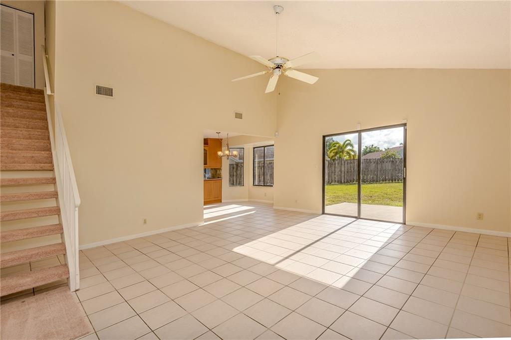 Natural light, open space, a clean palate to make this home your own! Vaulted ceilings, tile throughout the downstairs. Kitchen opens to the family room, dining area AND the living room - great entertaining here! Granite counter tops, custom cabinetry. Sliders in the living room open to an OVERSIZED fenced backyard, one of the biggest in the neighborhood! Good size bedrooms, 3 FULL BATHS, new carpet upstairs, freshly painted. 2 car garage - very easy to show.