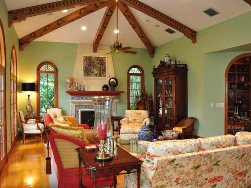 Situated in guard gated Sunrise Intracoastal, this fine custom Mediterranean home superbly crafted w/style & attention to detail. Grandly scaled living rm w/vaulted ceilings and beams, wood Fireplace; Oak paneled library; Chef's kitchen with gas; Family R m; 3 Ensuite bdrms, 4th used as office in master. Balcony on master with views of landscaped garden flanked by fountain & pergola. Spacious screened garden Rm. Large side yard with beautiful new heated pool, spa & pavers. close to Galleria Mall & beach.