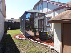 Renovated home with an open floor plan that is great for entertaining! Two sets of french doors open onto a spacious covered screened patio - with a built-in bar and cathedral-height open screened area to soak up the Florida sun. Great black and white kitchen with plenty of cabinet space, new sink, door and window to patio area. Master suite features a walk-in closet, separate upgraded vanity and over-sized shower, private w/c. Large fenced back yard and shed. New a/c, separate Laundry room, 1-car garage. Community amenities include a large green area that has a park atmosphere w/ play equipment, fenced pool area and covered cabana, full court basketball and sidewalks throughout the community. Top-rated schools! This is a great home for a great price! Come check it out today!