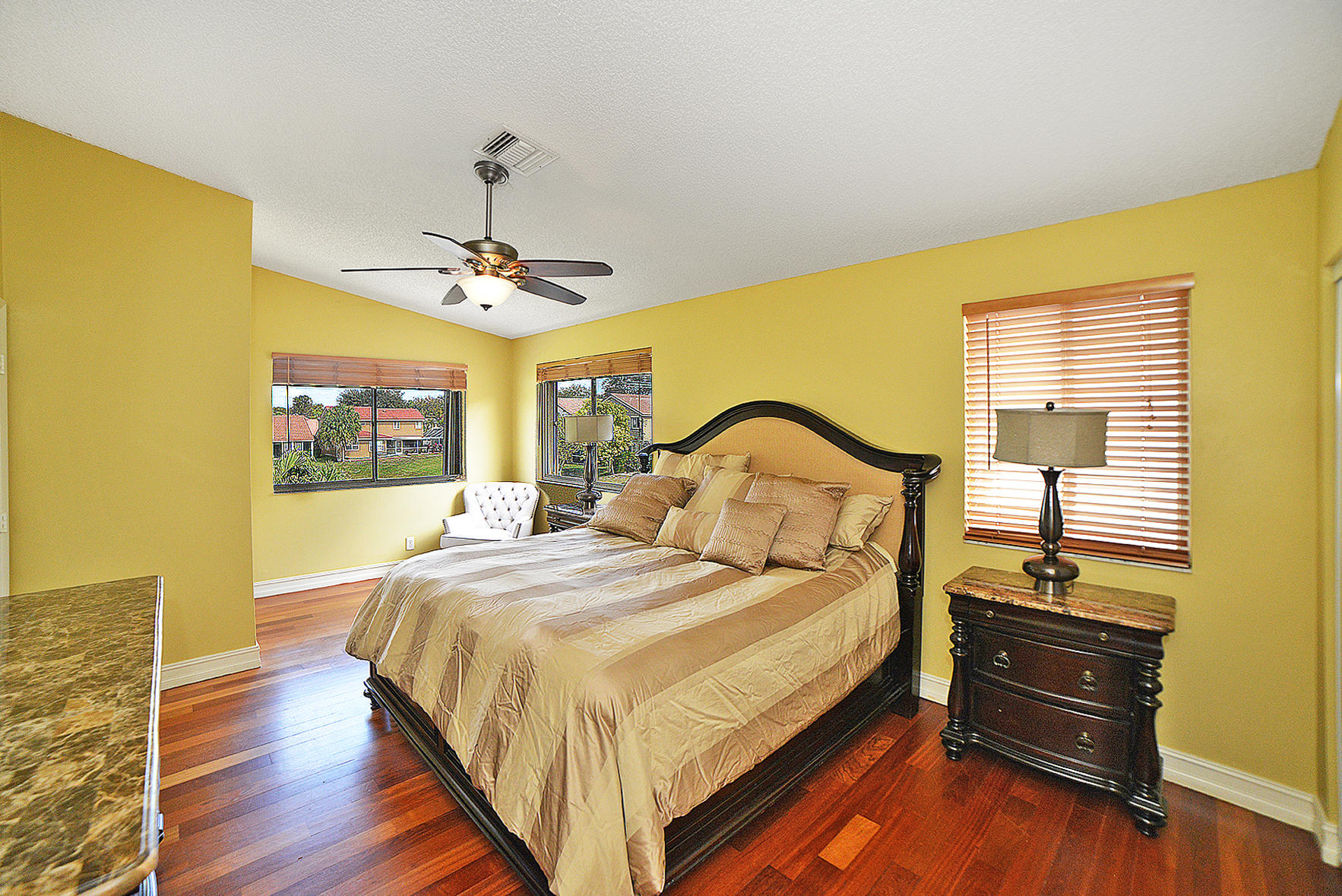 Beautiful, updated lakefront, 4 /2.5 home in the highly desirable Boca Spring's neighborhood! Long, expansive, water views throughout. Large master suite with two closets -one is an oversized walk-in, with custom built-ins. Renovated bathrooms, including a master bath with dual sinks and spa tub. Generous size bedrooms with ample closets. Granite counter-tops in the kitchen with stainless steel appliances, a large dining bar, and a separate breakfast area. Saturnia flooring on the first floor and gorgeous Brazilian hard wood floors on second floor! Entertain outside on the oversized, inviting patio which overlooks the lake. Walking distance to the community pool, tennis, basketball courts and playground. Accordion shutters. Close to shopping and schools! This house will not last!
