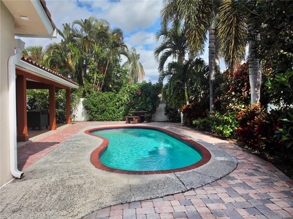 Great 2/2 ranch home east of US1 with potential for expansion. Home has been completely updated with new kitchen, bathrooms, tile roof, impact windows and doors, central a/c, updated electrical and plumbing. Great lot with partial view of Lake Santa Barbara and across the street from multi-million dollar homes. Hardwood and tile floors throughout. Granite counters. Private back yard with in-ground swimming pool and extensive tropical landscaping. Beautiful covered patio area. A MUST SEE !!!
