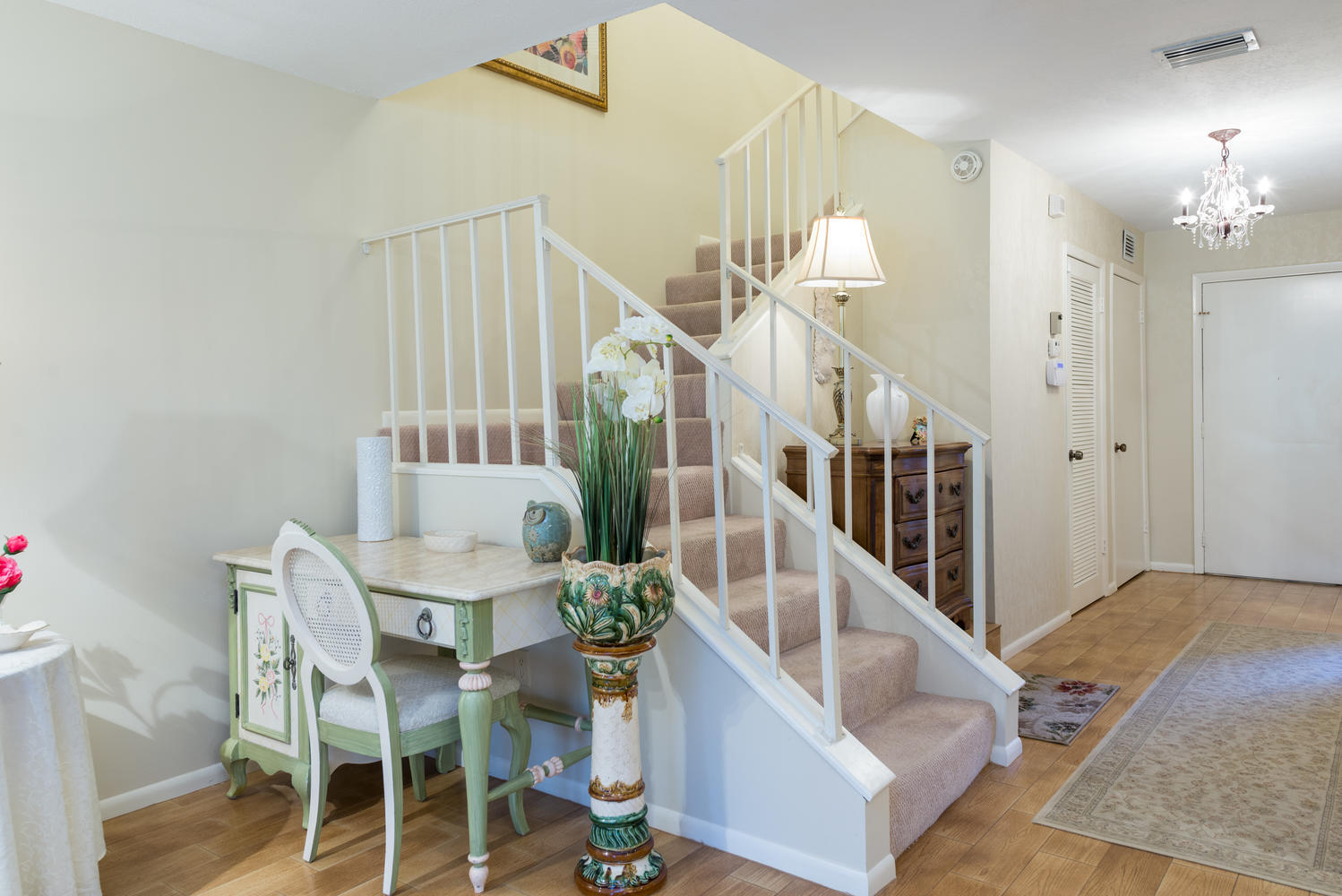 Beautifully remodeled two Story condo townhouse in beautiful Boca Lago. Magnificent Golf and Lake views. Extended living with enclosed terrace. Wood look ceramic tile downstairs, carpeting in stairs and upstairs. Each room has their own private full bathroom.Faux paint throughout the whole unit.Beautiful kitchen with top of the line cabinets and granite. Stainless steel appliances. Don't buy in Boca Lago until you see this one! Membership to club optional. Assoc.says 55+ and requires at least 20% down, if financing. Ceiling fan in Master bedroom will not convey.