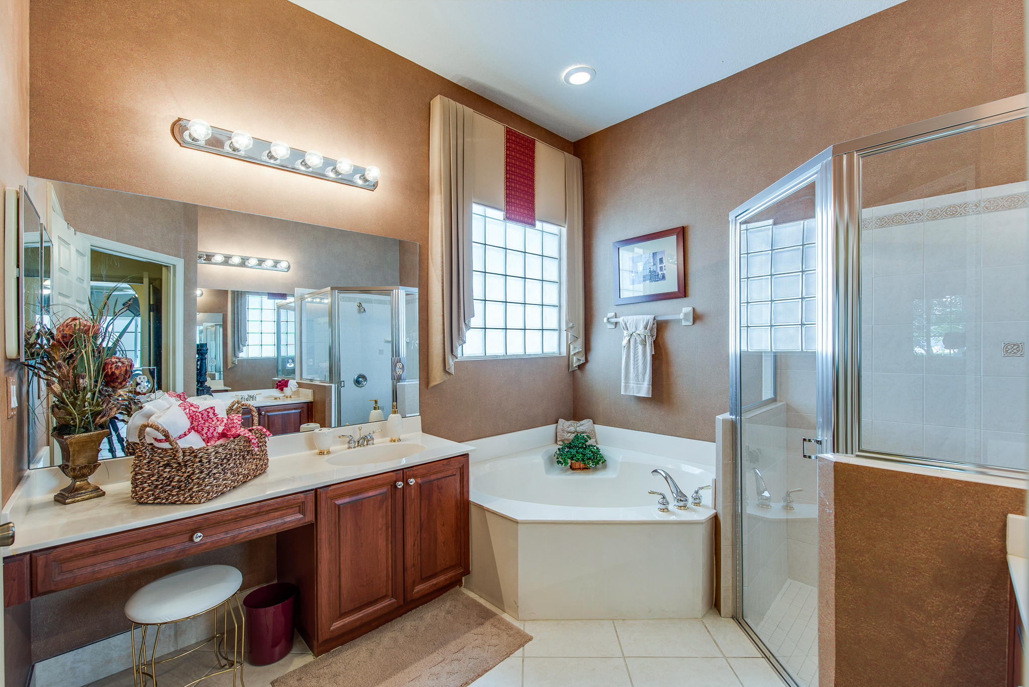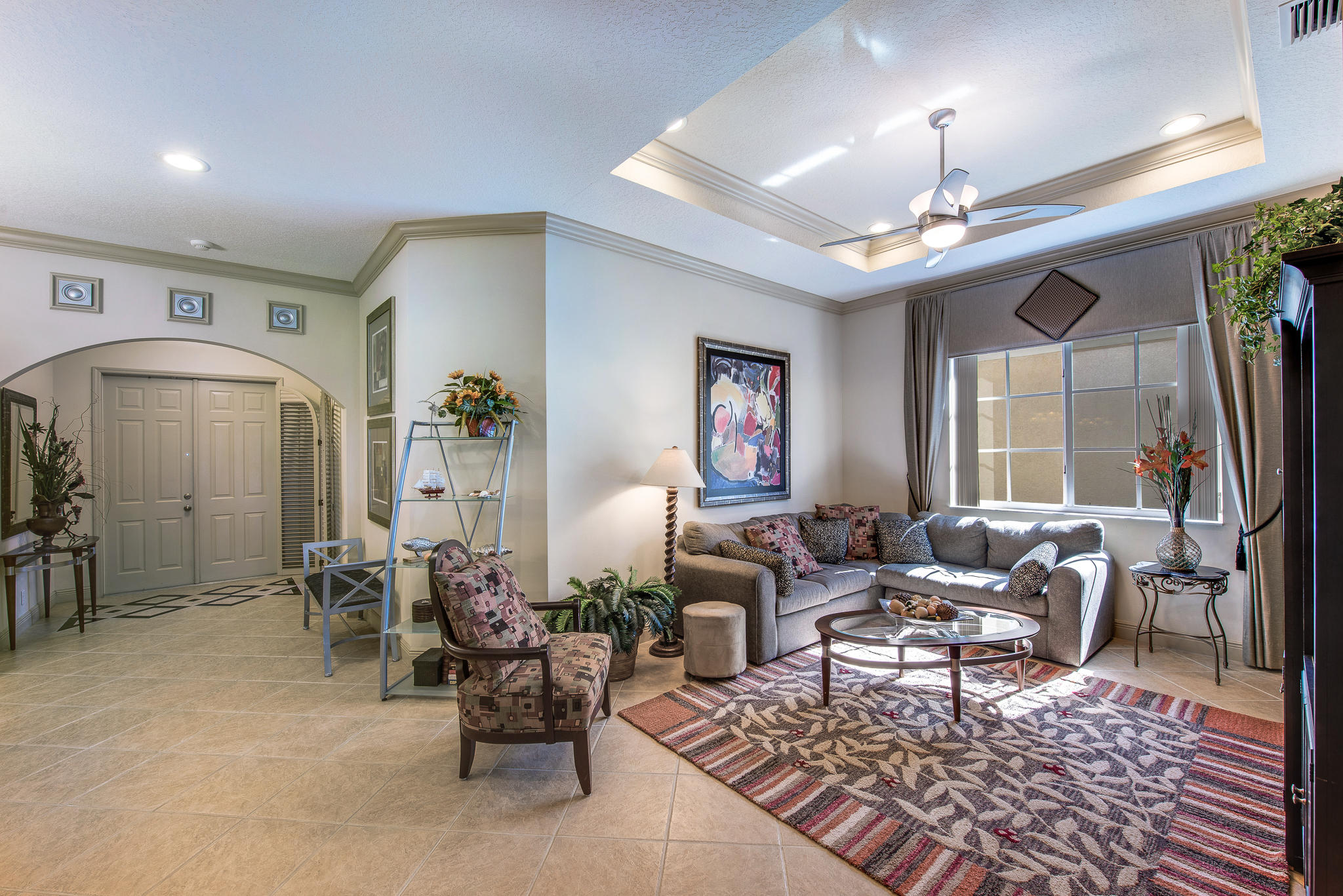 Elegant Professional Decorated Model Home with 4 bedroom/3 baths Magnificent and Simple with handsome crown moldings and custom plantation shutters doors defining the spaces. Mint Condition Model Home can be sold fully furnished or unfurnished. Custom Plantation shutters, granite counters, gourmet kitchen. Located in an upscale guard gate community. The community is very safe and quiet. With a very convenient location that is close to many Malls and restaurants such as: Wellington Mall, The Gardens, Palm Beach Worth Avenue, Ten minutes to the Palm Beach, MacArthur Beach State Park. The house is on a quiet cul-de-sac walking distance to clubhouse, pool, tennis and amenities. One level, kept like new. Lavish club house and all year pool. View 3D Virtual Tour