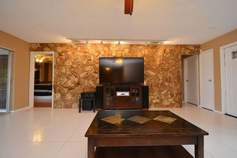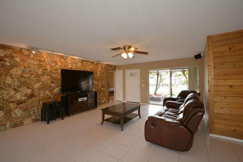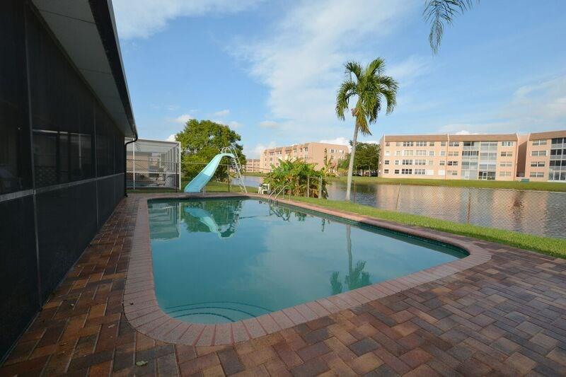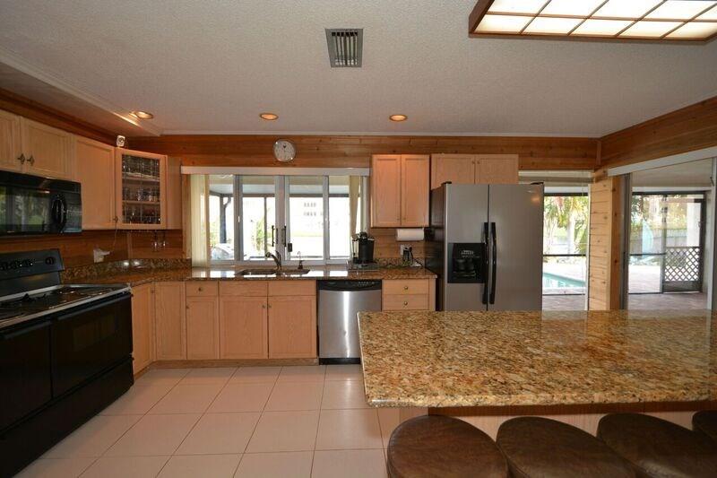 Welcome home to this lovely 3/2 on the water with a pool. When you step inside the front door you will see the open floor plan with custom rock wall and a nice view to your swimming pool and the large water canal. The living room and dining area with custom wood walls flow into a large open kitchen with granite counter tops and a large center island with room for dining. Triple sliders out to the covered patio and large pool deck. The master bedroom has a large walk-in closet.