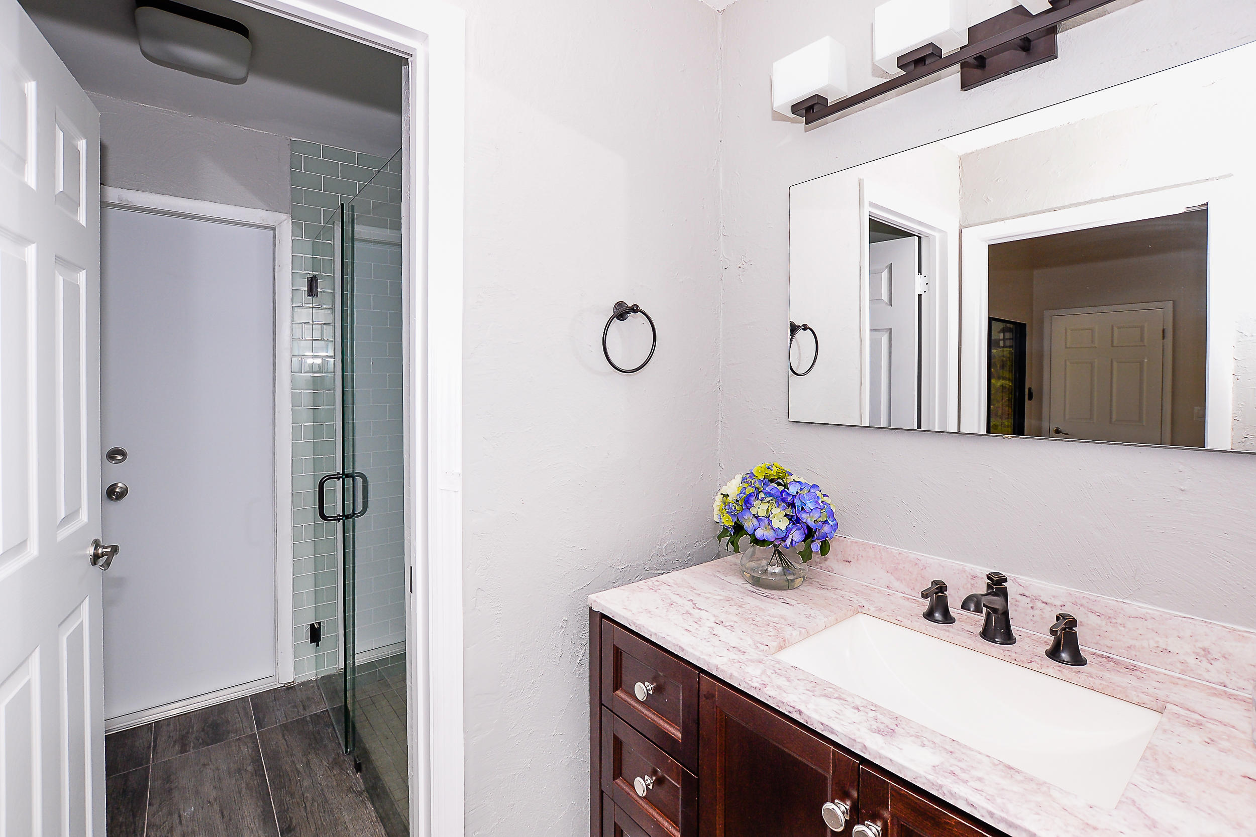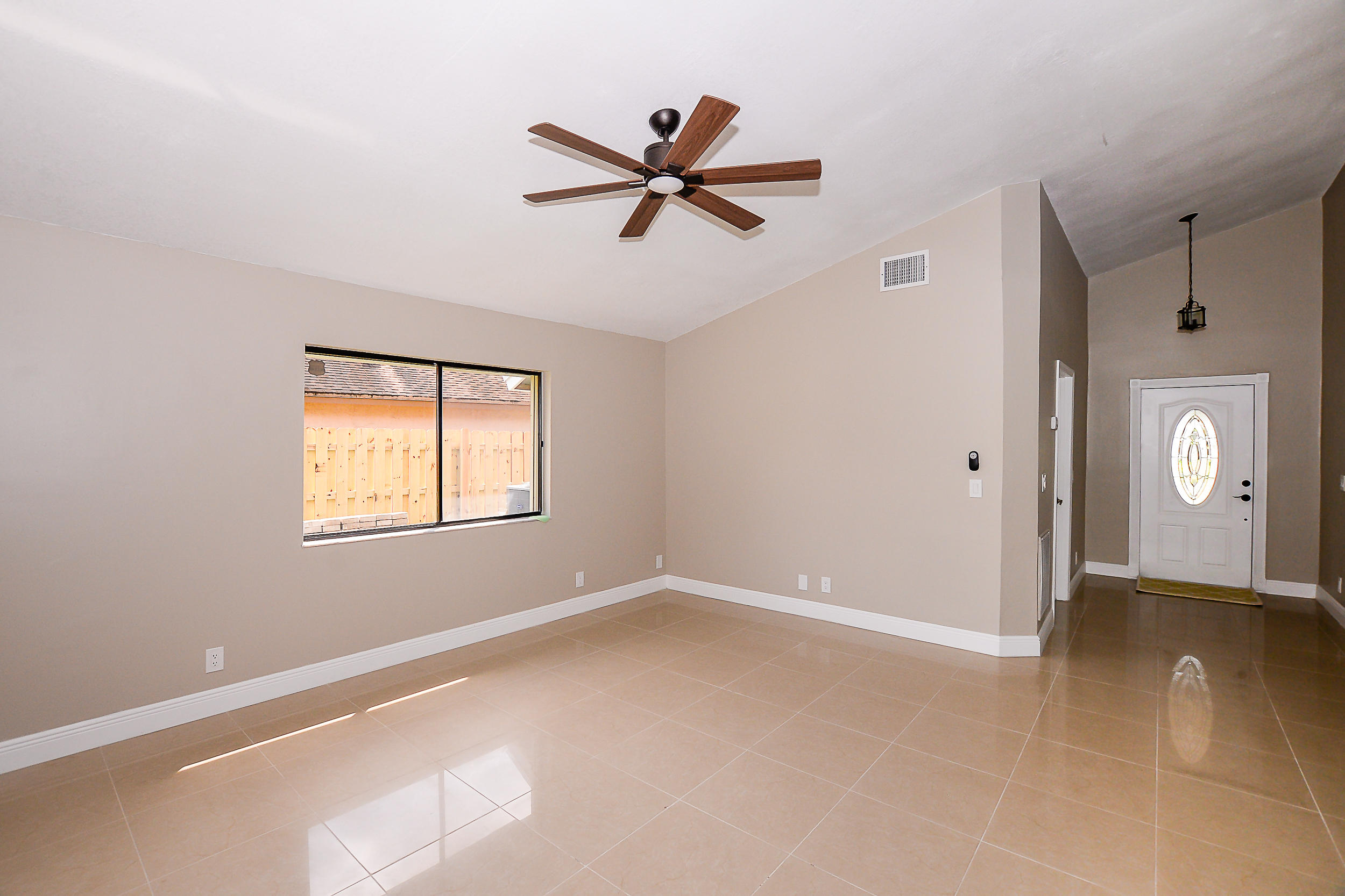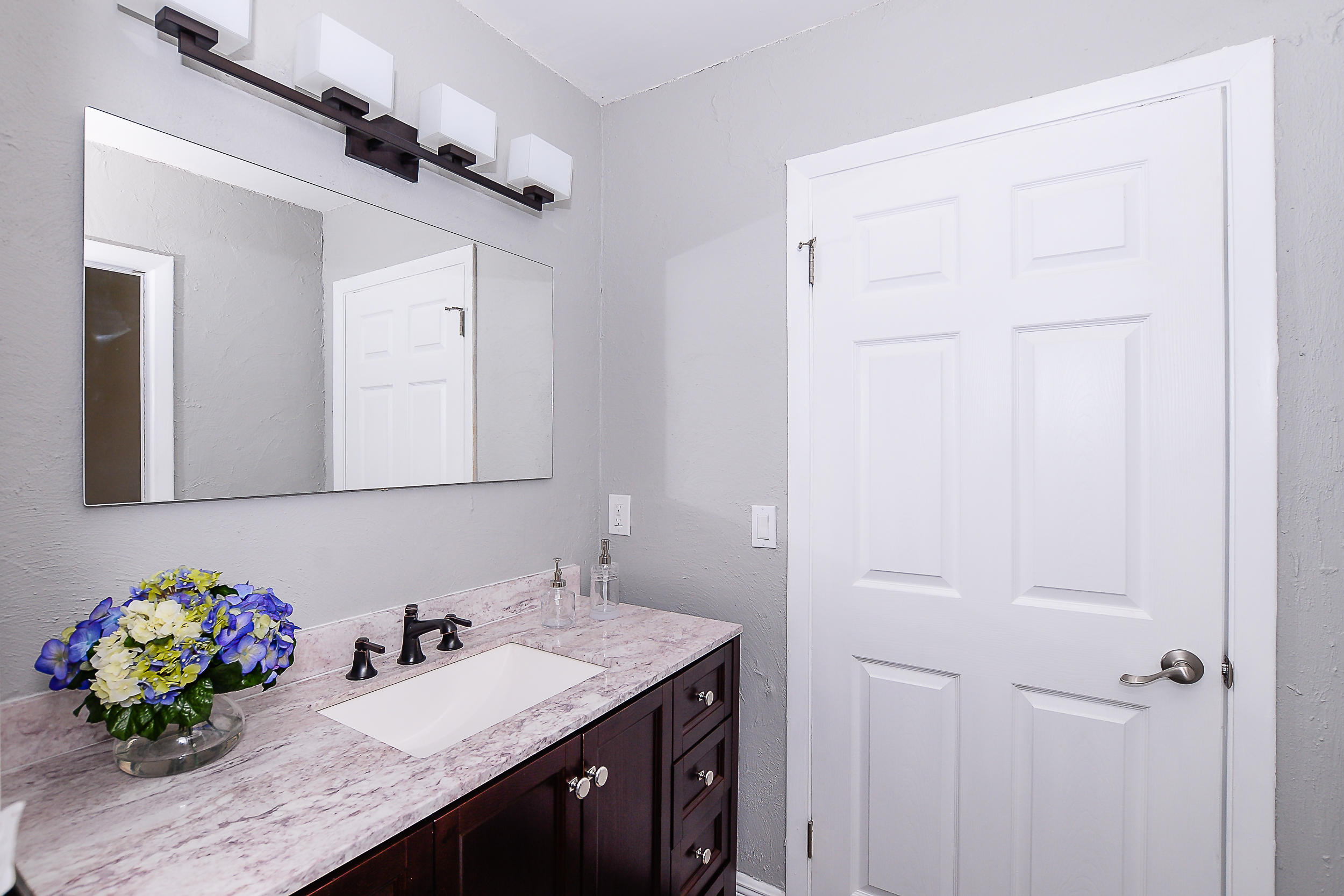 Renovated Boca Raton home with extra large backyard and access to the lake. No detail has been spared: this house looks and functions as new! When you enter you'll immediately notice the vaulted ceilings and gleaming ceramic tile floors. Amazing quartz kitchen with breakfast bar. Bathrooms are elegantly designed! The large closet in the master bathroom has room for all your stuff! Brand new stainless steel appliances, roof, electrical and air conditioning systems, and ceiling fans in all bedrooms to keep you cool on hot days. Relax by the sparkling pool, which has been resurfaced with new equipment. This home has it all! Located in a quiet yet accessible Ashley Park subdivision with very reasonable HOA fee. Schedule your showing today!