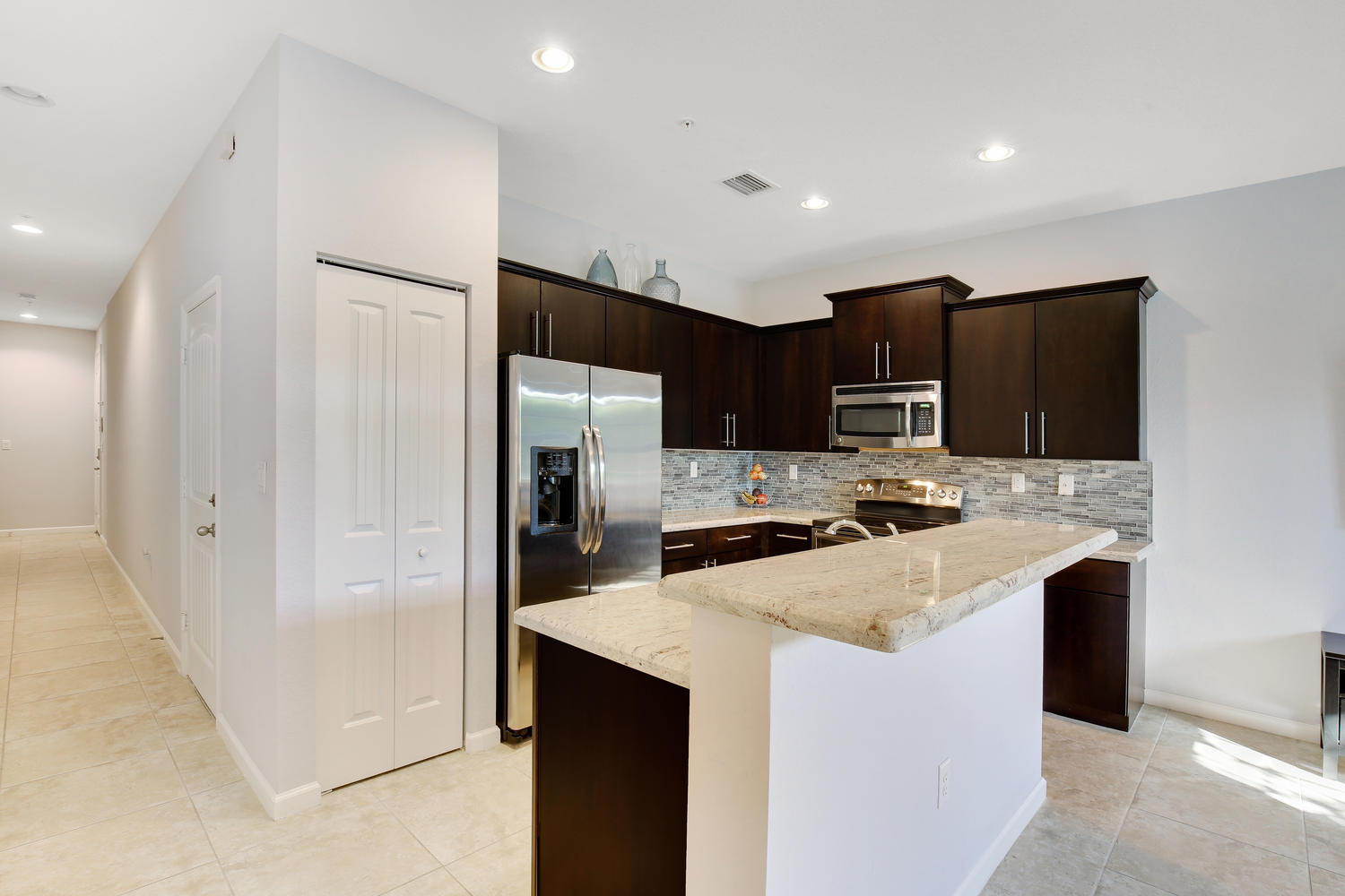 RARE, ONE OWNER, METICULOUS CORNER 3 BD -2 1/2 BA Townhome in New, Beautifully Landscaped Orchid Grove Community; PERFECTLY Located Near (Beaches, Shopping, Restaurants, Aquatic, Equestrian & Tennis Centers & Airport) AND the ability to STEP OUT YOUR BACK DOOR to CYPRESS ELEMENTARY SCHOOL GATE. This Beautiful Home features High Ceilings, Complete Hurricane Protection (Impact Windows & Doors), 18" Neutral Ceramic Tile Throughout Living Areas, Open Floor Plan - Chef's Dream Kitchen (Dark Wood Cabinetry, Granite CounterTops and Glass Tile BackSplash, SS Appliances) Opening to Family and Dining Areas. Large Master (HUGE Walk-In Closet, Dual Sinks and Separate Shower in the Master Bath), Attached Private Garage, Keyed Entry Lockset, Fire Sprinkler Suppression System, Pavered Drive.