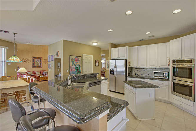 Great home with an oversized kitchen and gorgeous granite countertops with white cabinetry open to family room in a gated non-equity community. Enjoy biking/jogging trails, tennis programs, clubhouse, pool, exercise room in this active neighborhood.