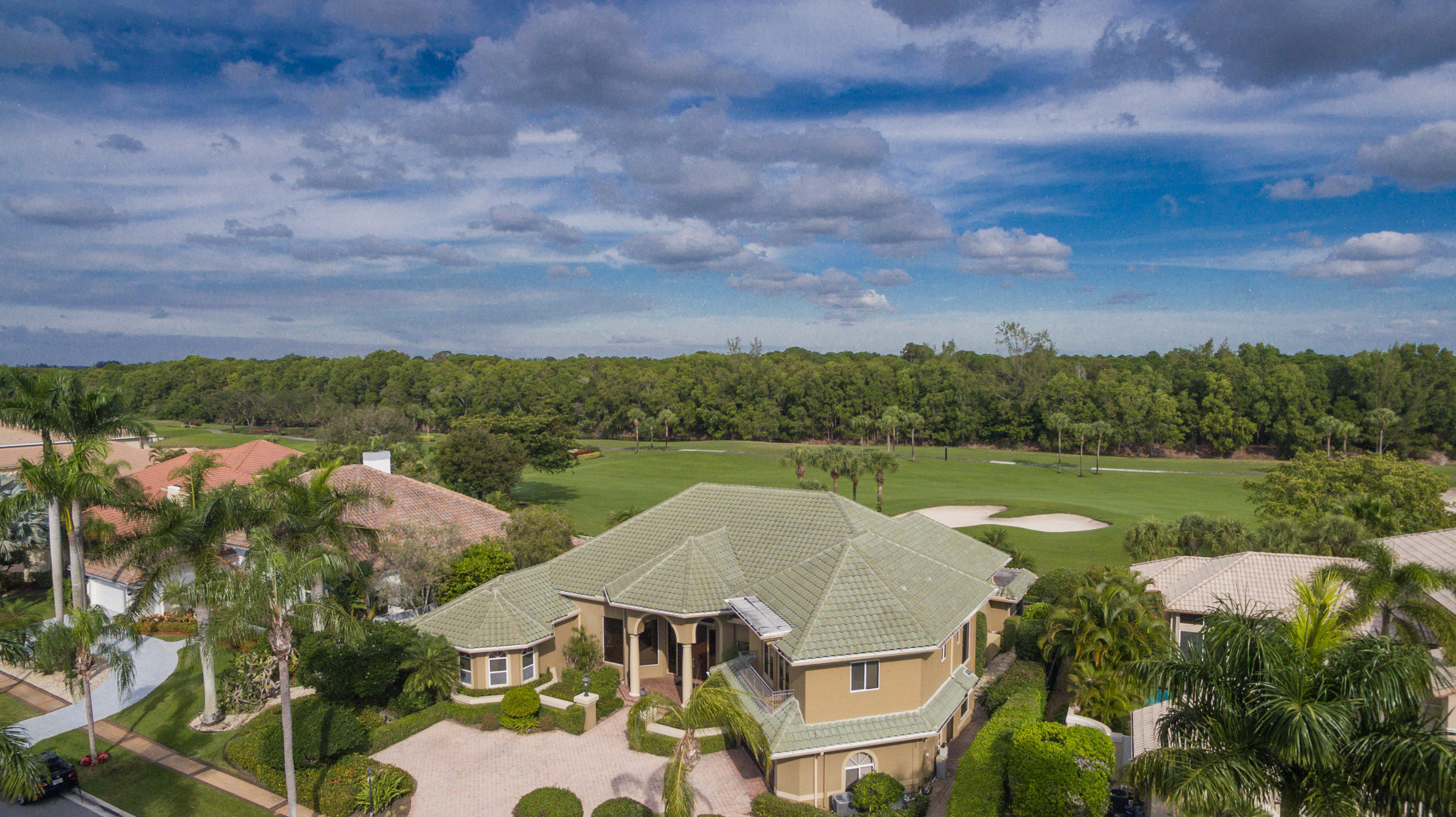 Beautiful custom estate home located on a fantastic lot location on the St Andrews Signature Palmer Golf course. This special golf vista overlooks the golf course, the C15 Canal and the lush tropical landscaping of Morikami Museum and Japanese Gardens. Dramatic entry foyer opens to a large great room with neutral marble floors and consists of a spacious living room complete with wet bar separating it from the family room. This open area also includes a breakfast room, kitchen and formal dining area. Very large 1st floor master suite features large windows overlooking the pool patio and golf views and includes his and hers bathrooms and very spacious closets. Also located on the first floor is a magnificent library with custom rich wood cabinetry and built in desk, as well as two en suite