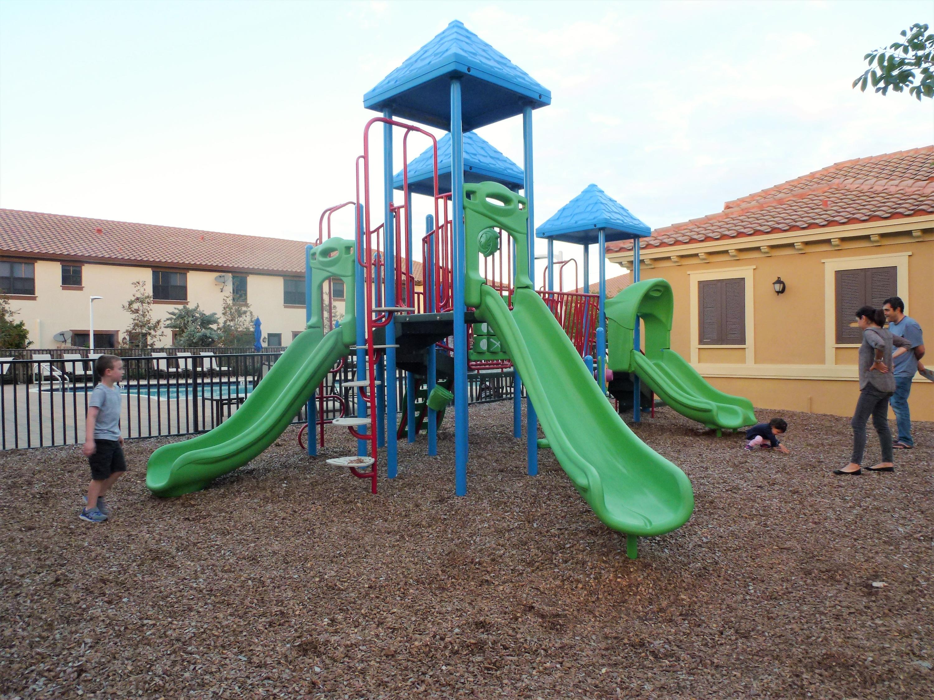 Exclusive gated, 24/7 guarded community. Beautiful corner unit, 2 story townhouse w/2 car garage, 4 bed, 3.5 bath in 2,056 A/C sq. ft. living space. All window covers throughout the house, all lamps and 2 paddle fans included. Wired for an innovative security system featuring Home Automation with Nexia(tm) Home Intelligence, along with impact resistant windows and doors, also all windows in the house are child proof. All downstairs is ceramic tile floor. The foyer's arch entryway opens up to a good size living room, first floor powder room and access to the 2-car garage with a storage room with light, electric garage door. Living Room & the Great Room gives passage to a wood fenced-in patio with expanded paved area. A good size kitchen with oversized beautiful dark wood cabinetry with