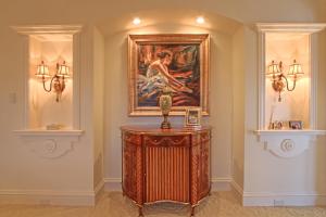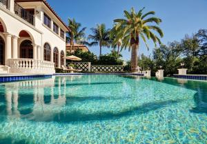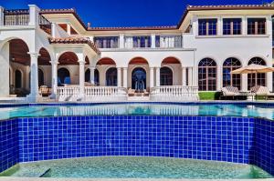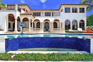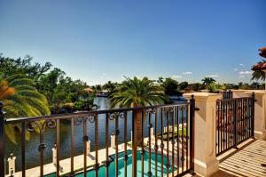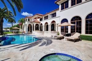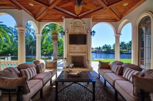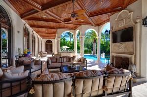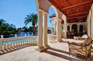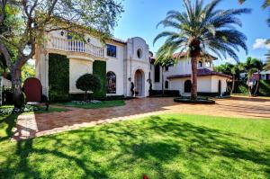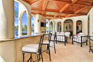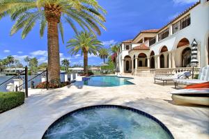 This stunning seven bedroom, eight and one half bath residence spans over 11,000 square feet. Its oversized waterfront lot is set on a quiet cul-de-sac within exclusive Royal Palm Yacht & Country Club. The home and grounds overlook Capone Island. Splendor on the water, this fabulously furnished and featured estate home fulfills every desire and need. Impressive outside and in, this home was designed with entertaining in mind. The two-story foyer with custom inlayed wood floor and sweeping free-form staircase is a fantastic introduction. Eight foot paneled doors with classic hardware compliment extensive crown and custom moldings throughout. Enter in the formal yet inviting living room that overlooks the pool and patio through a wall of French doors nex...