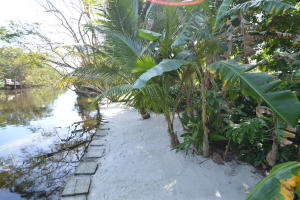 This tropical oasis is located on the El Rio canal with fixed bridge ocean access and a private dock. Spacious open floor plan with three bedroom plus bonus room/workshop/office/utility area.Some of the many fine features include: a granite rock fireplace, plaster walls, hurricane shutters, cedar lined closets, walk in pantry plus butlers pantry, wood floors, loggia with cypress ceiling, sandy beach with fire pit by the dock and heated pool. The backyard is huge and has mature trees along with fruit trees. A must see for the buyer who wants the true Florida lifestyle.