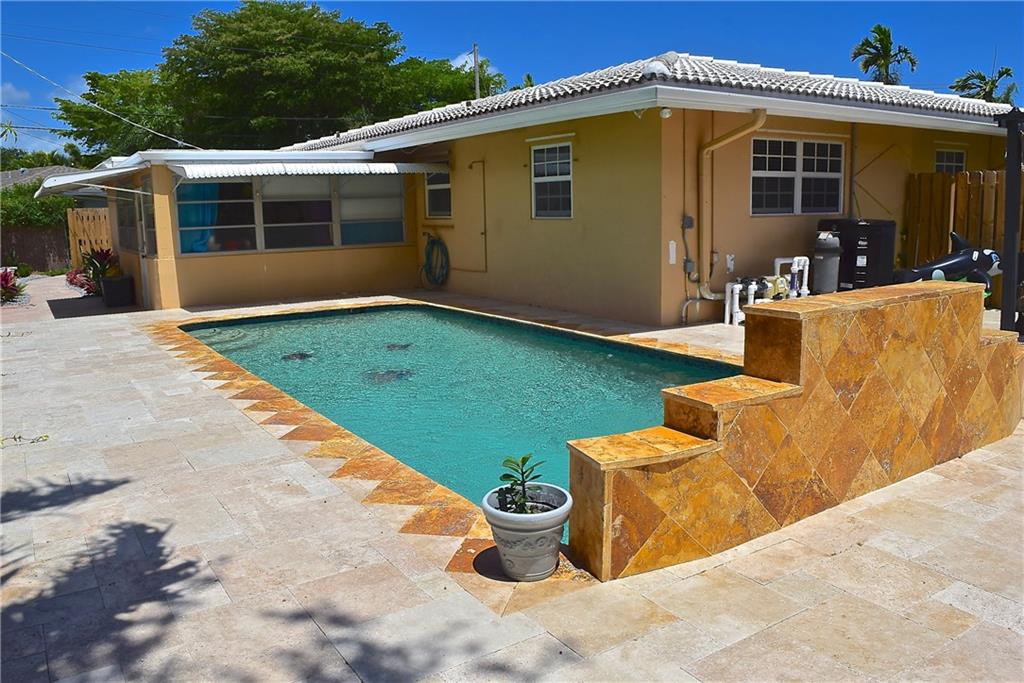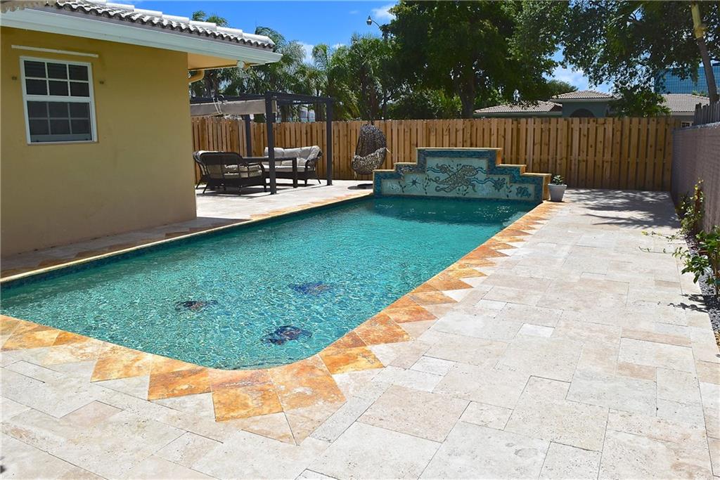 Beautiful & updated 3/2 pool home located in desirable Ft. Lauderdale neighborhood. This home has been completely remodeled: updated electrical, a/c, impact windows, tile & laminate wood flooring, knockdown textured walls & ceilings. Beautiful kitchen w/ S/S appliances, granite countertops, wood cabinets & soft close drawers. Remodeled baths. Home sites on an oversized fenced, corner lot w/ circular driveway. Amazing new custom pool w/ Mosaic design, River Rok surface & Travertine patio & pool deck.