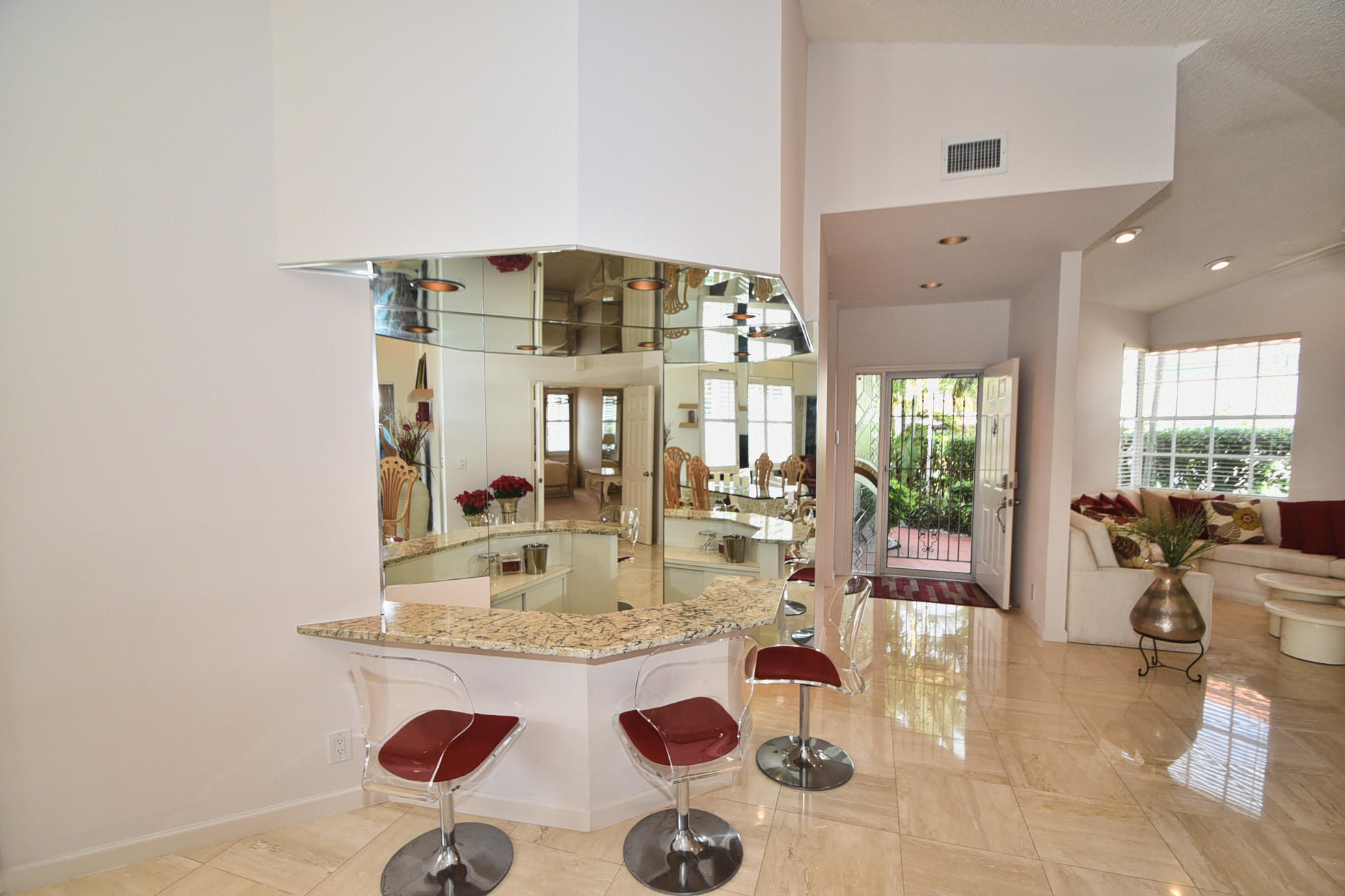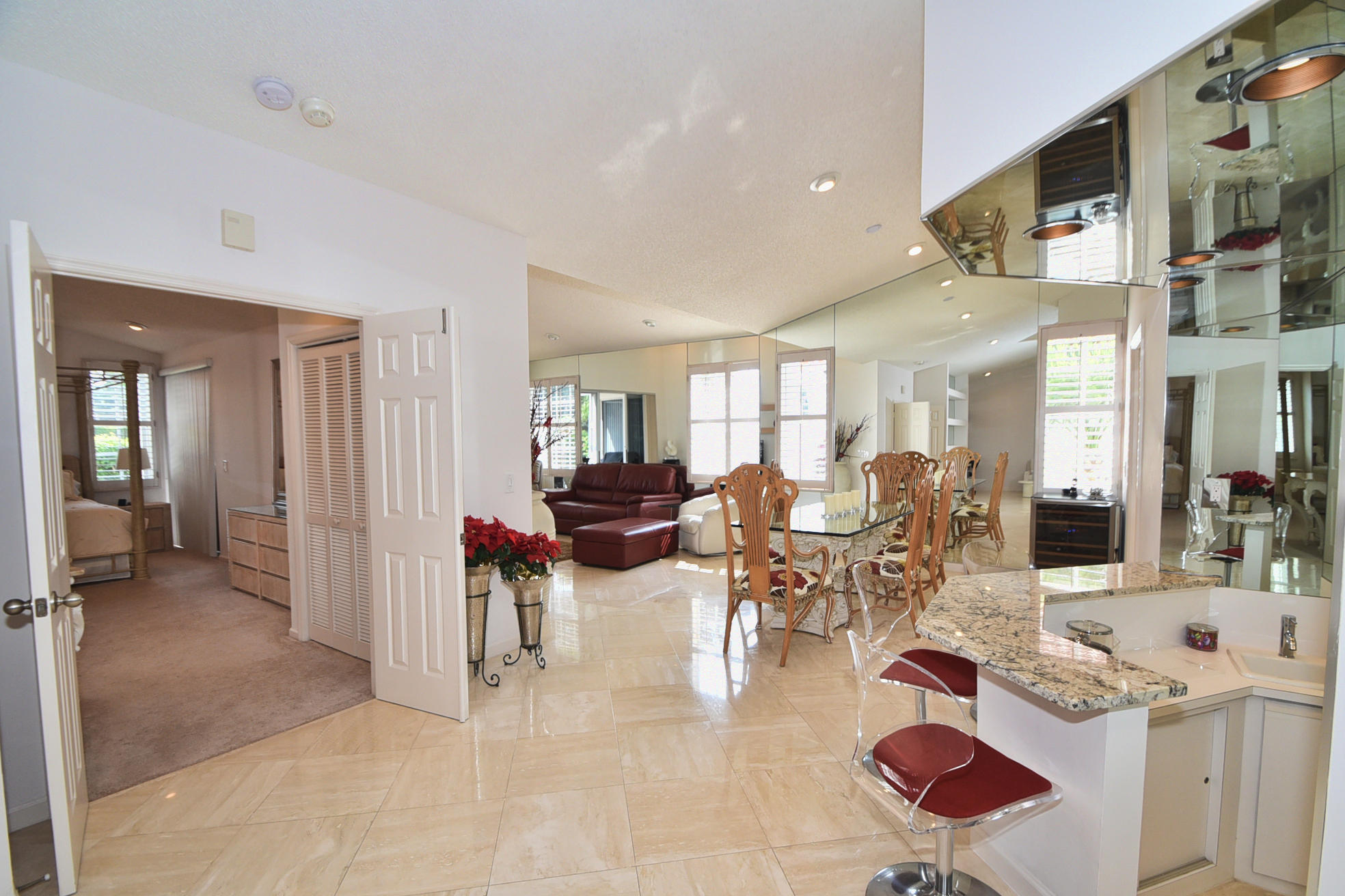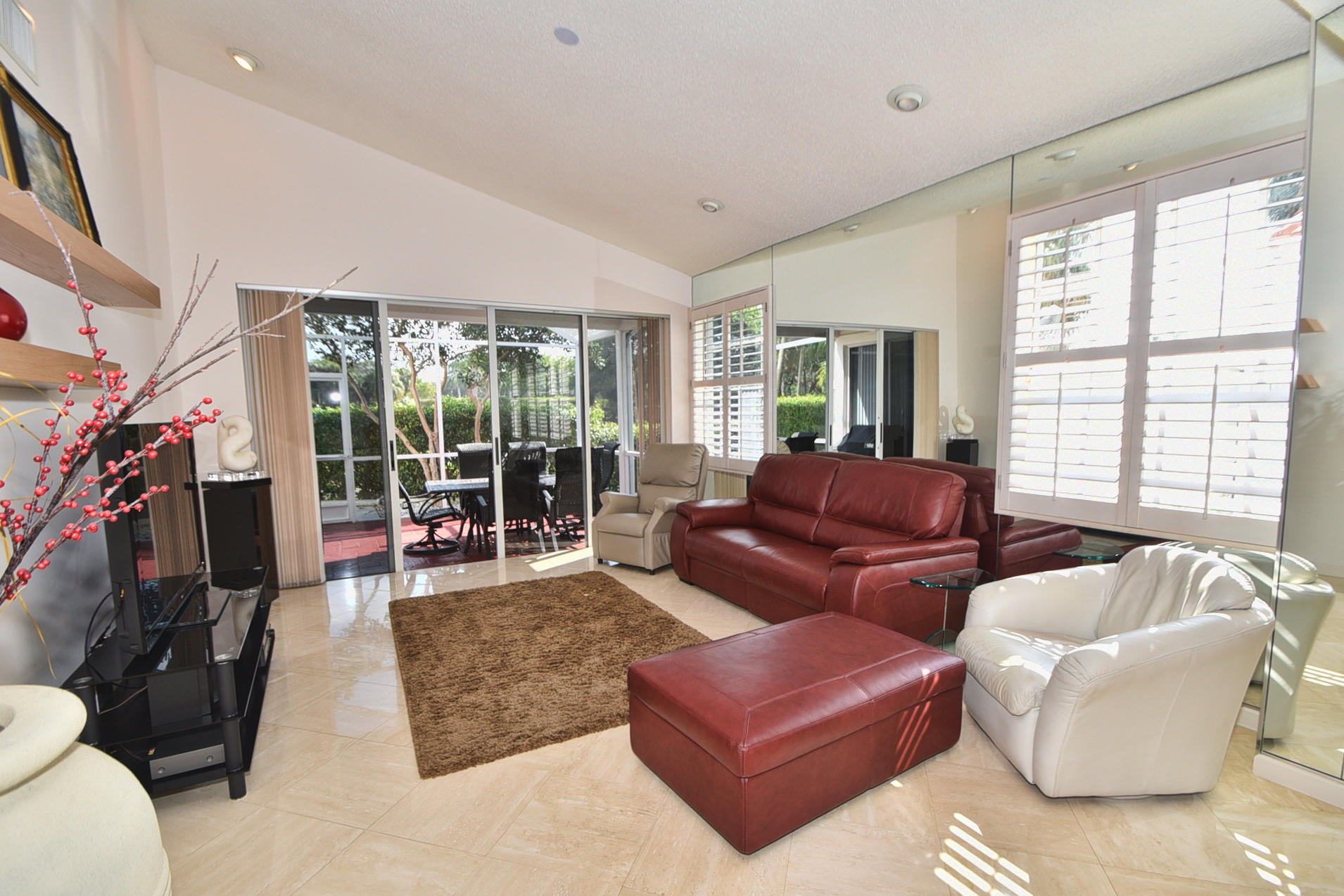 Beautifully updated 2 Bedroom+Den/2 bath home with high quality emodeled kitchen & bathrooms, marble floors, crown moldings,plantation shutters overlooking Boca CC golf course with stunning lake views & Screened Patio. Stainless Steel Appliances, Granite Counters in Kitchen,Wet Bar & bathroom, Closets w/custom built-ins. This home is filled with Natural Light & vaulted ceilings throughout. It shows like a model home so bring your fussiest buyers!!! Available furnished or unfurnished.
