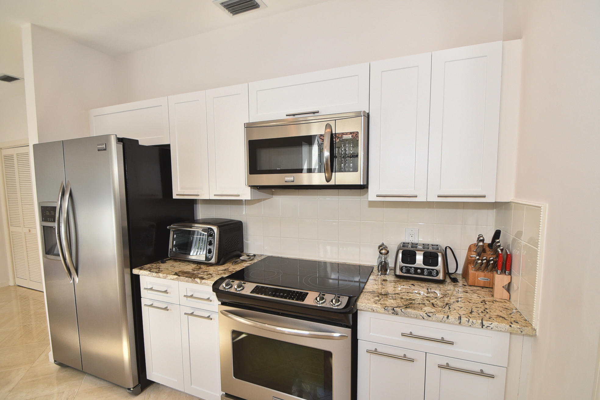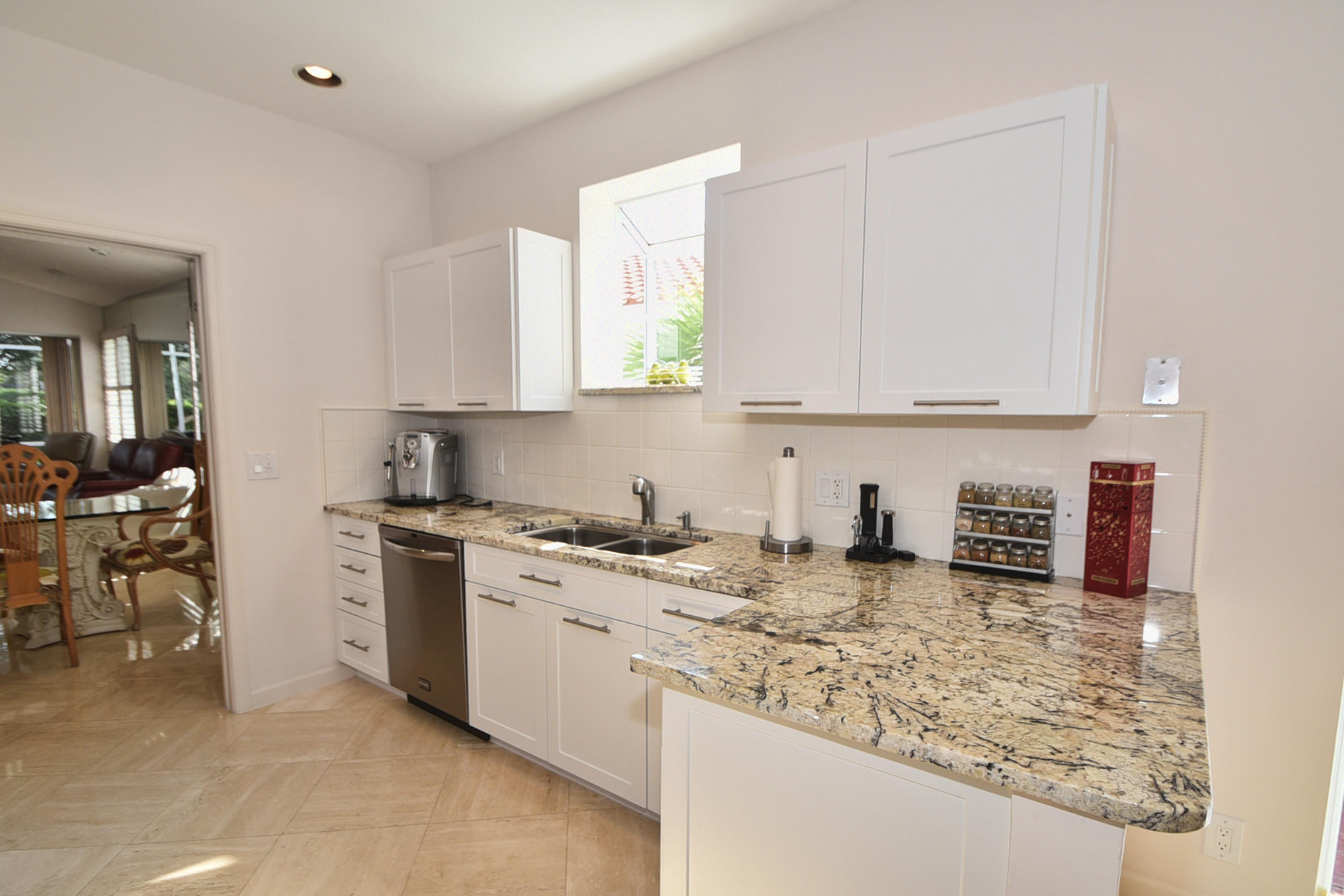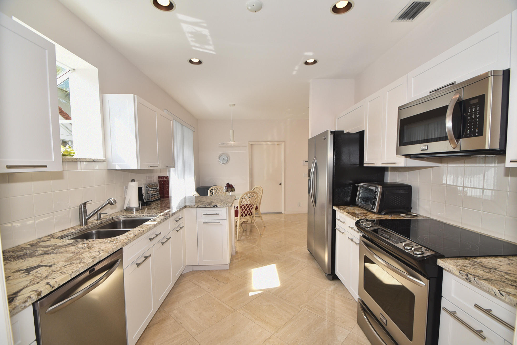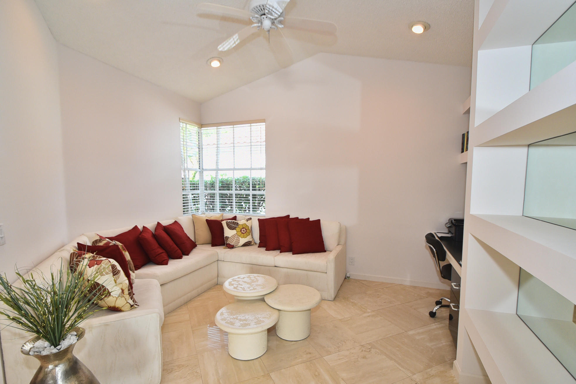 Beautifully updated 2 Bedroom+Den/2 bath home with high quality emodeled kitchen & bathrooms, marble floors, crown moldings,plantation shutters overlooking Boca CC golf course with stunning lake views & Screened Patio. Stainless Steel Appliances, Granite Counters in Kitchen,Wet Bar & bathroom, Closets w/custom built-ins. This home is filled with Natural Light & vaulted ceilings throughout. It shows like a model home so bring your fussiest buyers!!! Available furnished or unfurnished.