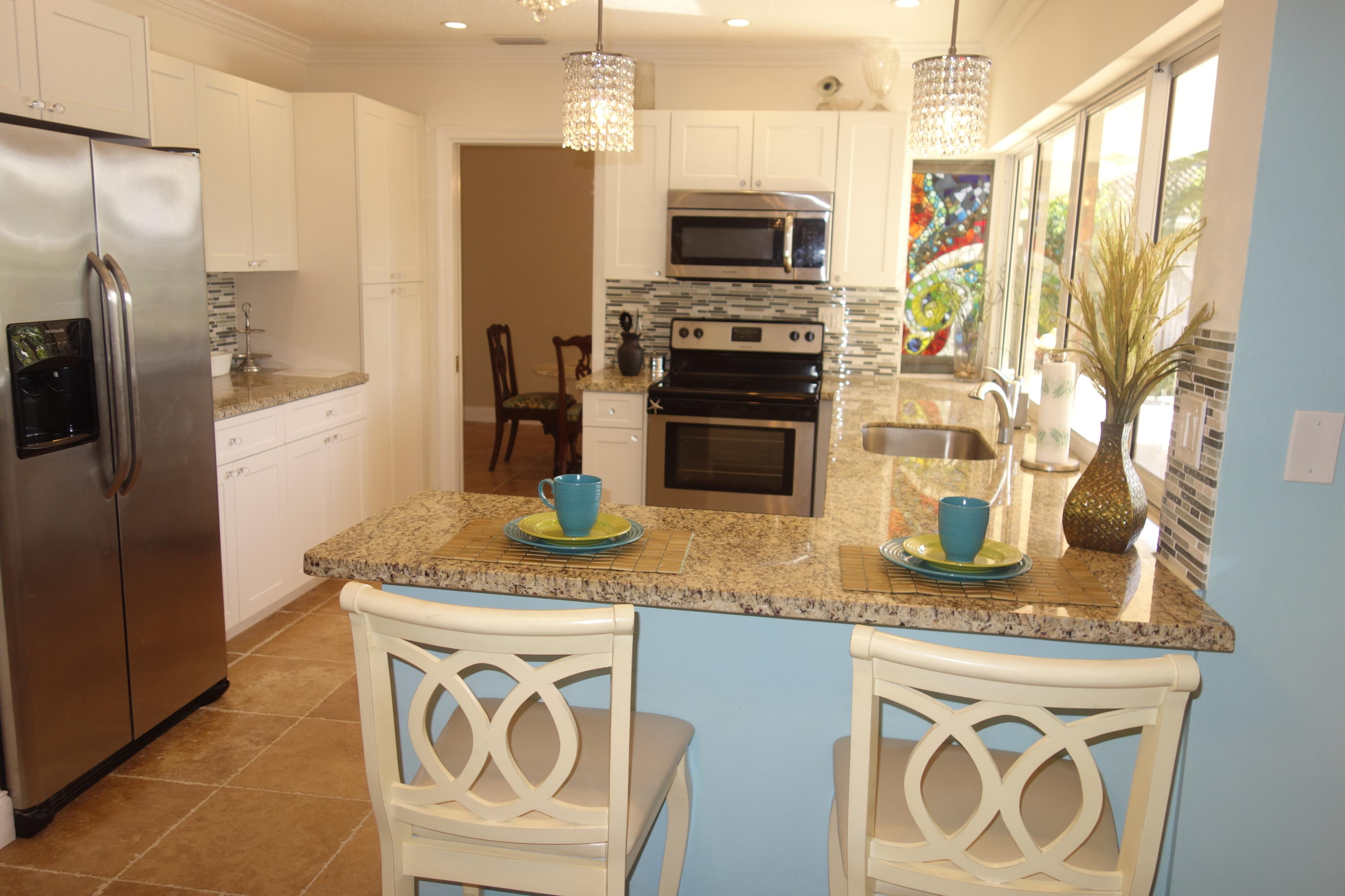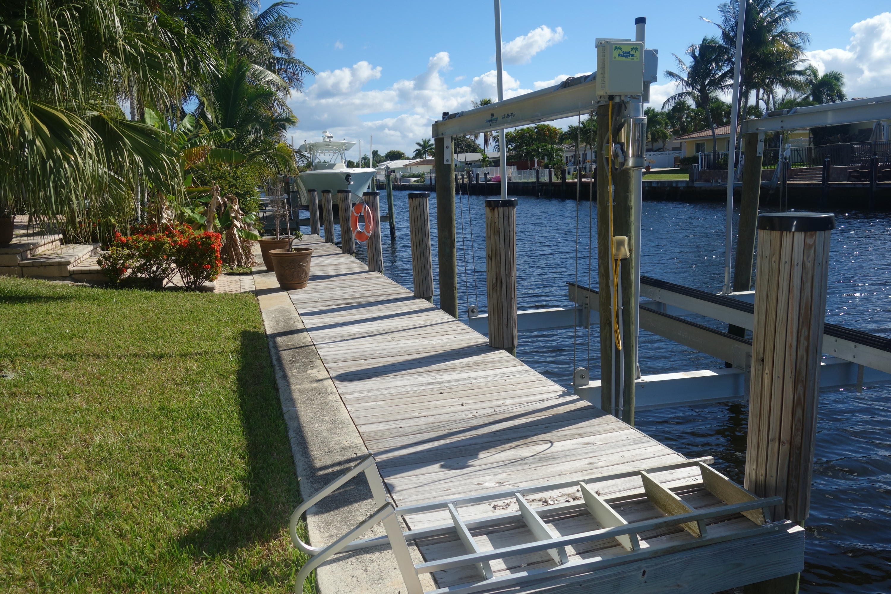 Terrific 4/2 Waterfront Pool home with seawall, dock and lift. Tiled throughout. Bright, remodeled kitchen with wide picture window taking advantage of water and pool views. Stainless steel and granite, lunch counter, and recessed lighting. Updated bathrooms too. Roomy laundry room. Family room off kitchen. Solar panels heat the pool and hot water heater. Split bedroom plan. Circular paver drive. Clean as a whistle!
