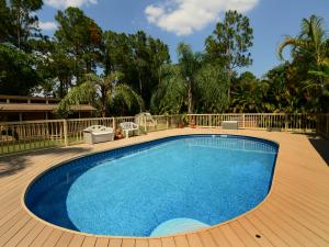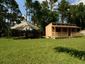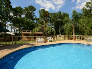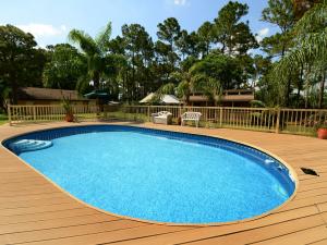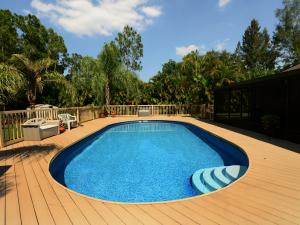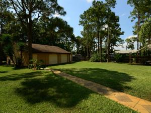 Super property, with storage galore. The home has mostly laminate flooring. open floor plan. Upgraded kitchen has corian counter tops and tile backsplash. Inside office/den (4th b/r) has no closet. 2nd bth has spa tub and shower. The lot is fully fenced with an electric gate, and the home has an 8 camera sec system. There is a 36x30 detached garage adjacent to a 23x10 office, plumbed for bath, under same roof, and totally air conditioned. another outbuilding - 24x12, built to withstand a cat 3 hurricane, and has a cute porch. The pool deck is made of composite wood (never rots), and is 48x32, encompassing the above ground pool, (which appears in ground!) Then there is still a 35x12 screened patio with insulated metal roof. Two wells, sprinkler is on