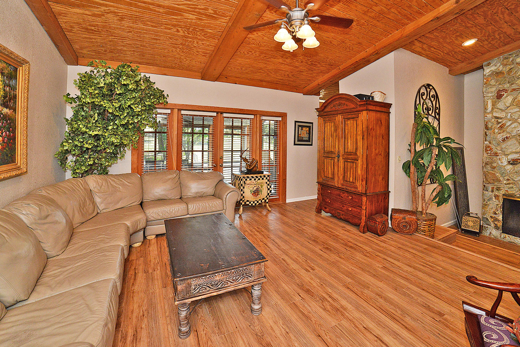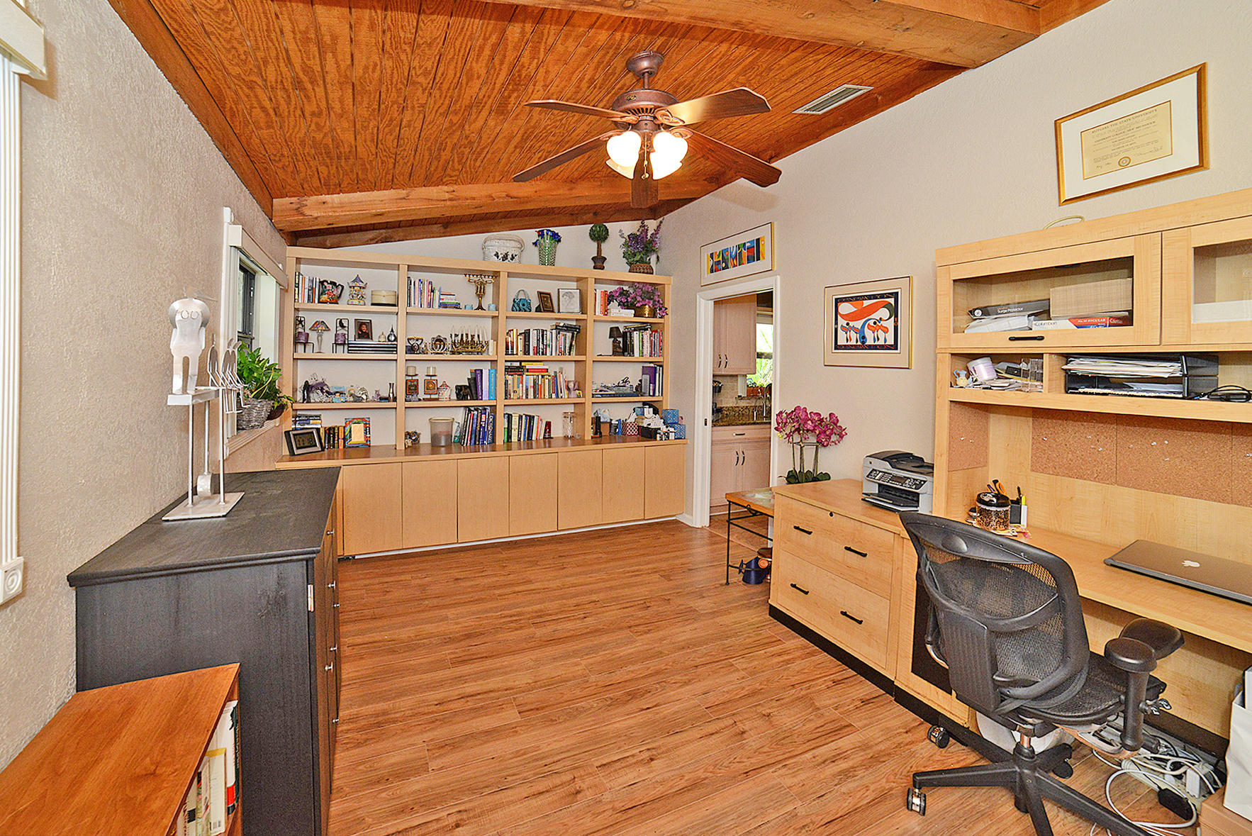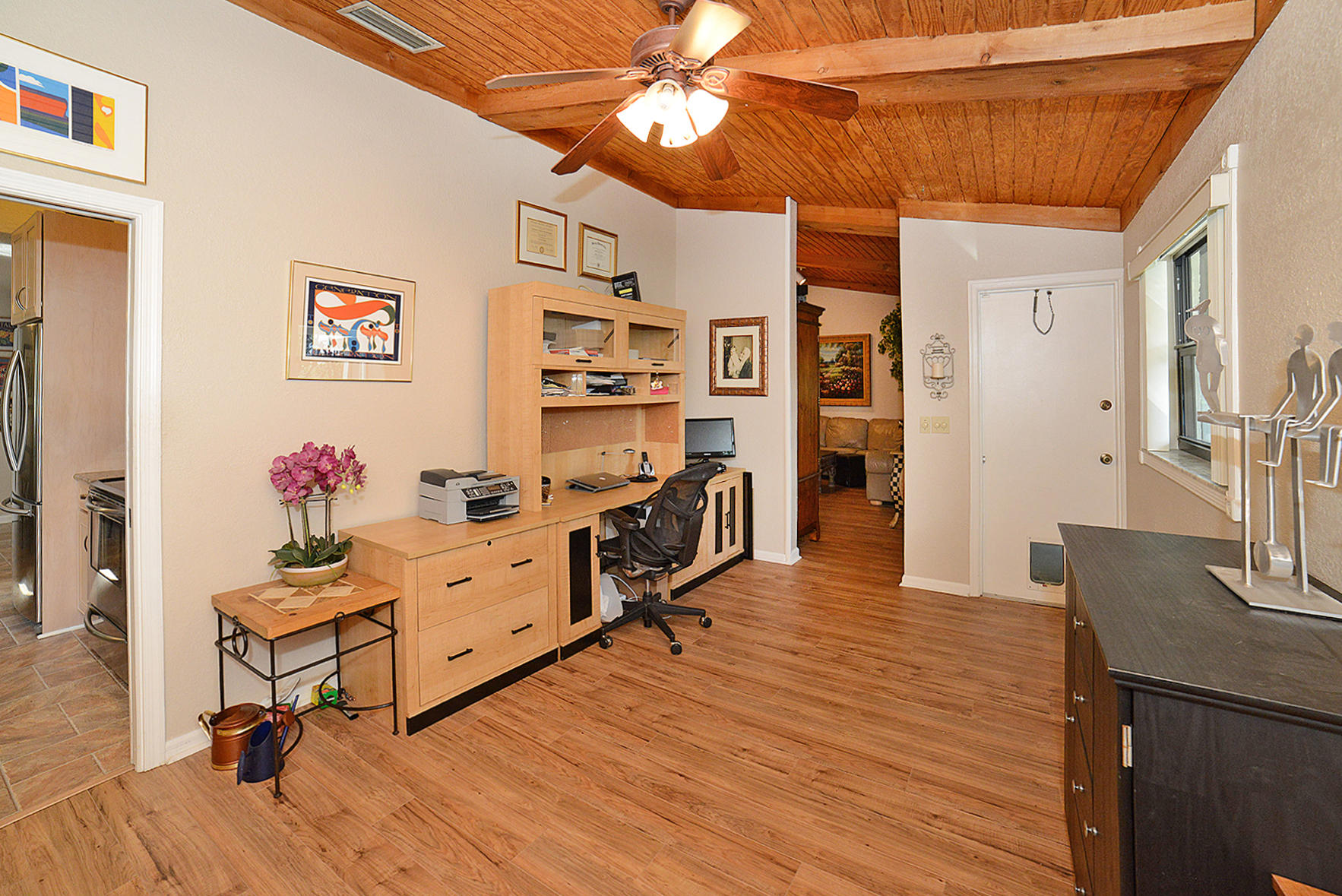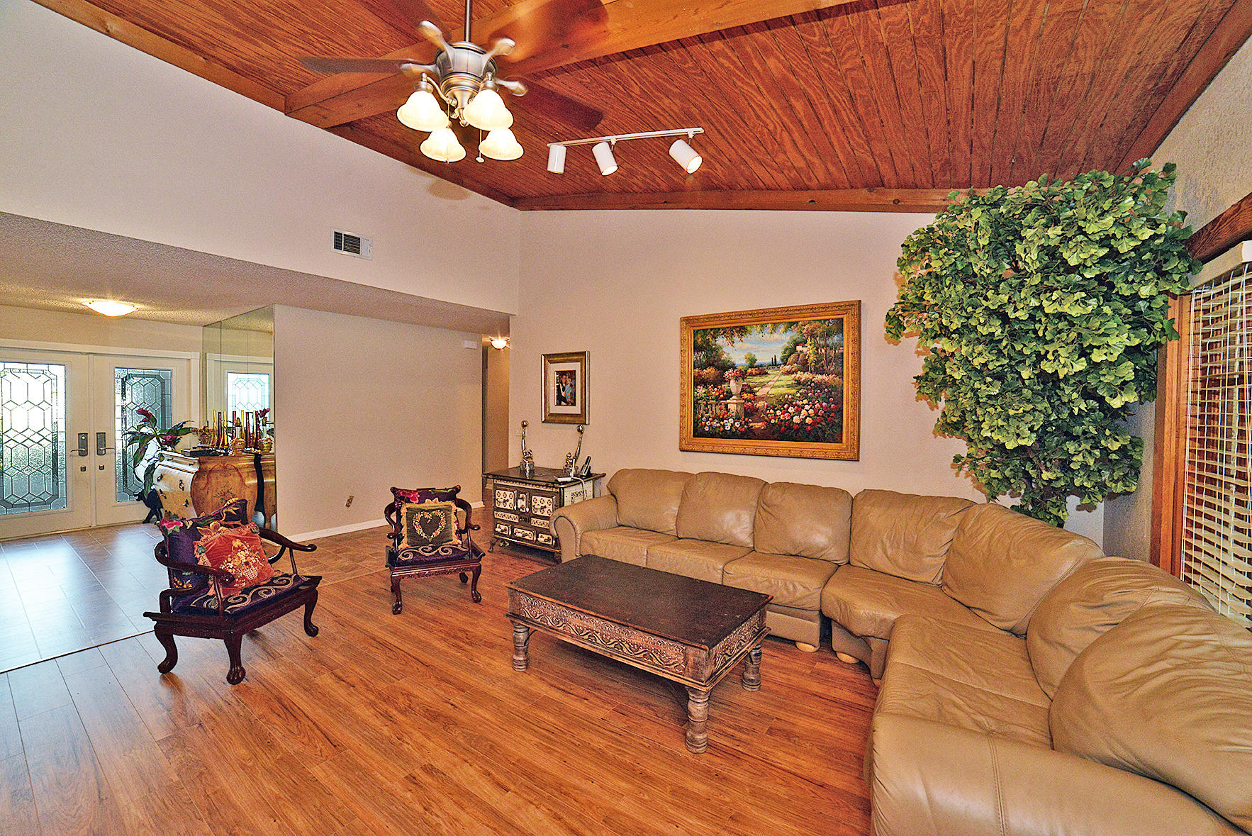 Beautiful 4 Bedroom home plus large Office in the friendly community of Pheasant Walk! This 1 story home w/ 3000+ total Sq Ft has impact windows,vaulted ceilings,laminate & tile floors! Backs to community park! Updated Kitchen has 42" cabinets,granite,s/s appliances,pantry & breakfast area. Large Living Room has a Fireplace & French Doors. Mstr BR has a big walk in closet,bright Mstr BA w/ tile floors & decorative glass block. Other features include newly updated Guest BA;3 sizable Guest BRs;indoor Laundry RM;2 car garage w/ hurricane garage door;newer a/c;closet organizers in ALL closets! Enjoy the privacy of the screened patio & splash pool w/ no back neighbors which adds to the enjoyment of this delightful home!A-rated schools;roving security;community park & lake;close to shops & Hwys!