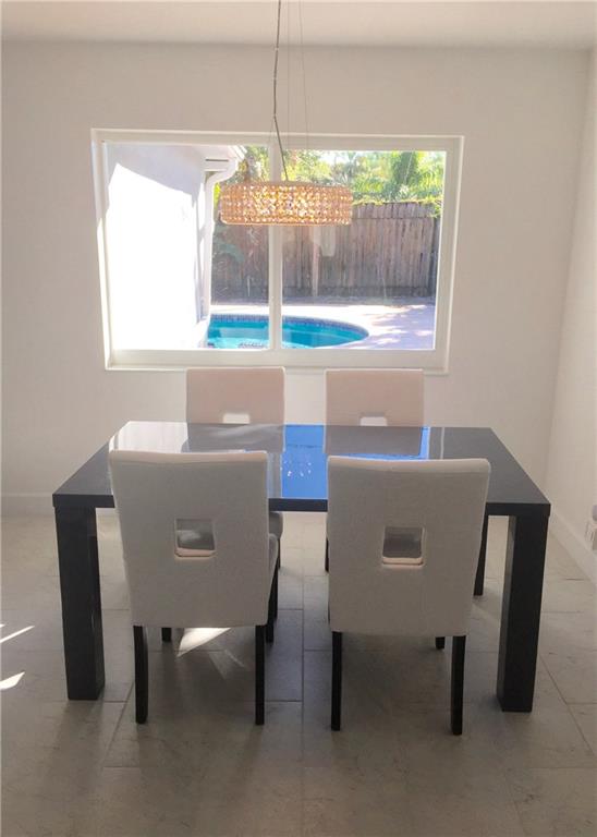 The most attractive single family home with a POOL east of Federal Hwy for the price. 2/2 with an extra sun room to go with your large pool surrounded by ample area for entertaining friends and family. Stylish white and gray tile throughout and hurricane impact windows and sliding doors. Brand NEW kitchen and NEW Samsung appliances including full size washer and dryer. Renovated bathrooms with rain head showers. All that and only 1/2 a mile from the beach! How can you not love this? Welcome Home!
